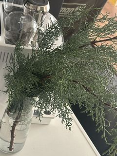 届いた時から、部屋中が森の匂いになり、鼻詰まりが治ってスースーしてきました。全部で4本入っていました。森からきた感が満載で野性味溢れる枝ぶりでどうやって花瓶に生けたり形を整えたりしたらいいのか解らないくらい野性味たっぷりで枝は結構曲がっています。樹液でペトペトするので手袋したほうがよさそうです。小分けにしながらあちこちに飾って楽しみたいと思います。