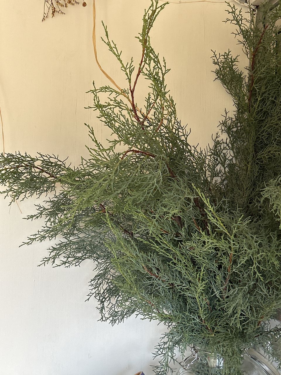 とにかくボリュームがすごくてビックリです。 フレッシュさも素晴らしいのですが、枝ぶりを整えるだけでもリースやスワッグが複数個作れそうな端材が出ます。 一人暮らしだと持て余してしまう量でした。 あと剪定時に樹の成分が周囲に飛び、床や家財がペタペタするので気になる方は新聞紙のご用意を。
