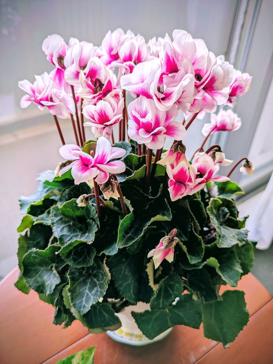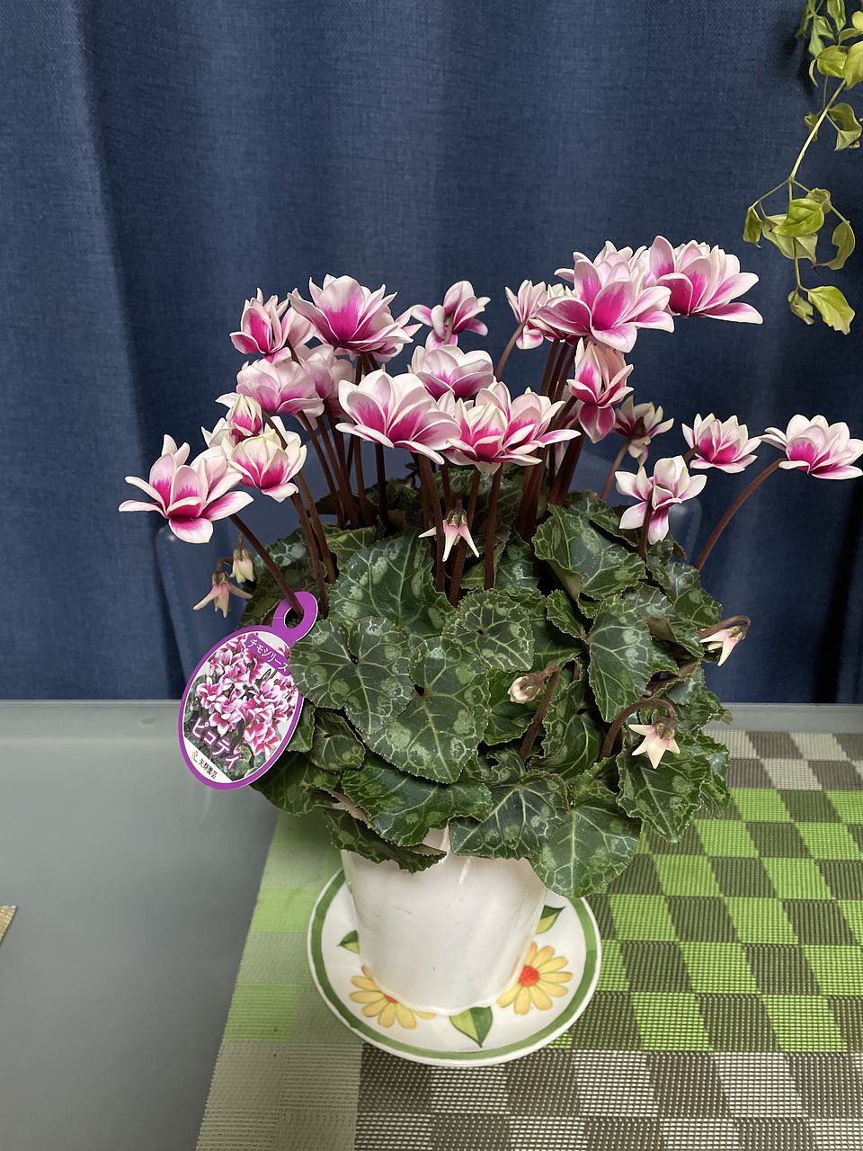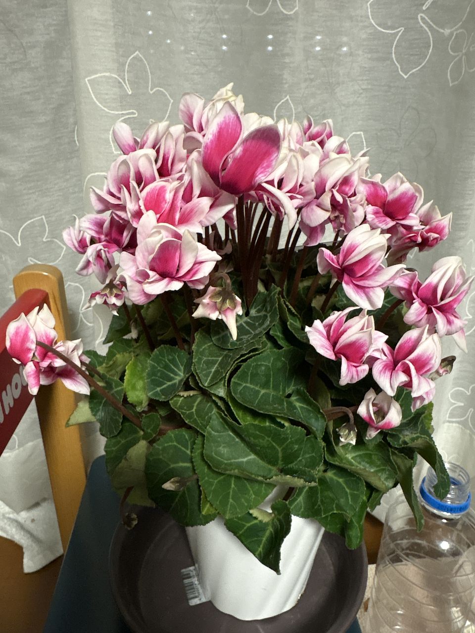 八重咲のシクラメン窓際に置くのに ちょうど良い大きさで天気のいい日には 気分良く眺めています。