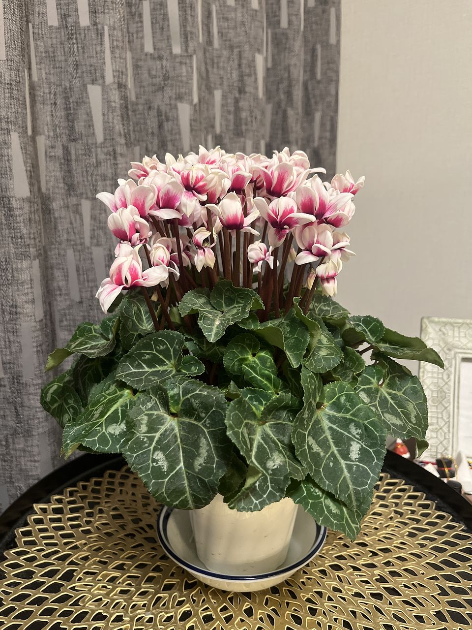 小さくて可愛いお花をたくさんつけたシクラメンが届きました。 母が好きだったシクラメン、大切に育てます😊