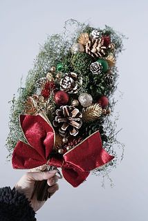届いたらそのまま飾るだけ!大きなリボンがポイントのスワッグをお部屋に飾って、クリスマスの準備をしませんか?木の実とカラフルなボールをたっぷり使用していて華やか🎀玄関、リビングスペースに飾ってみて。