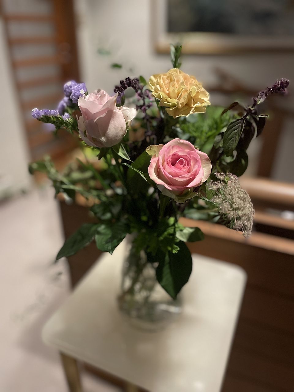 美しいバラや季節のお花と合わせて、たっぷり睡眠を取り、肌を休ませるビューティースリープをイメージして束ねてみました。美しい睡眠をとれますように😴ぜひお試しを。