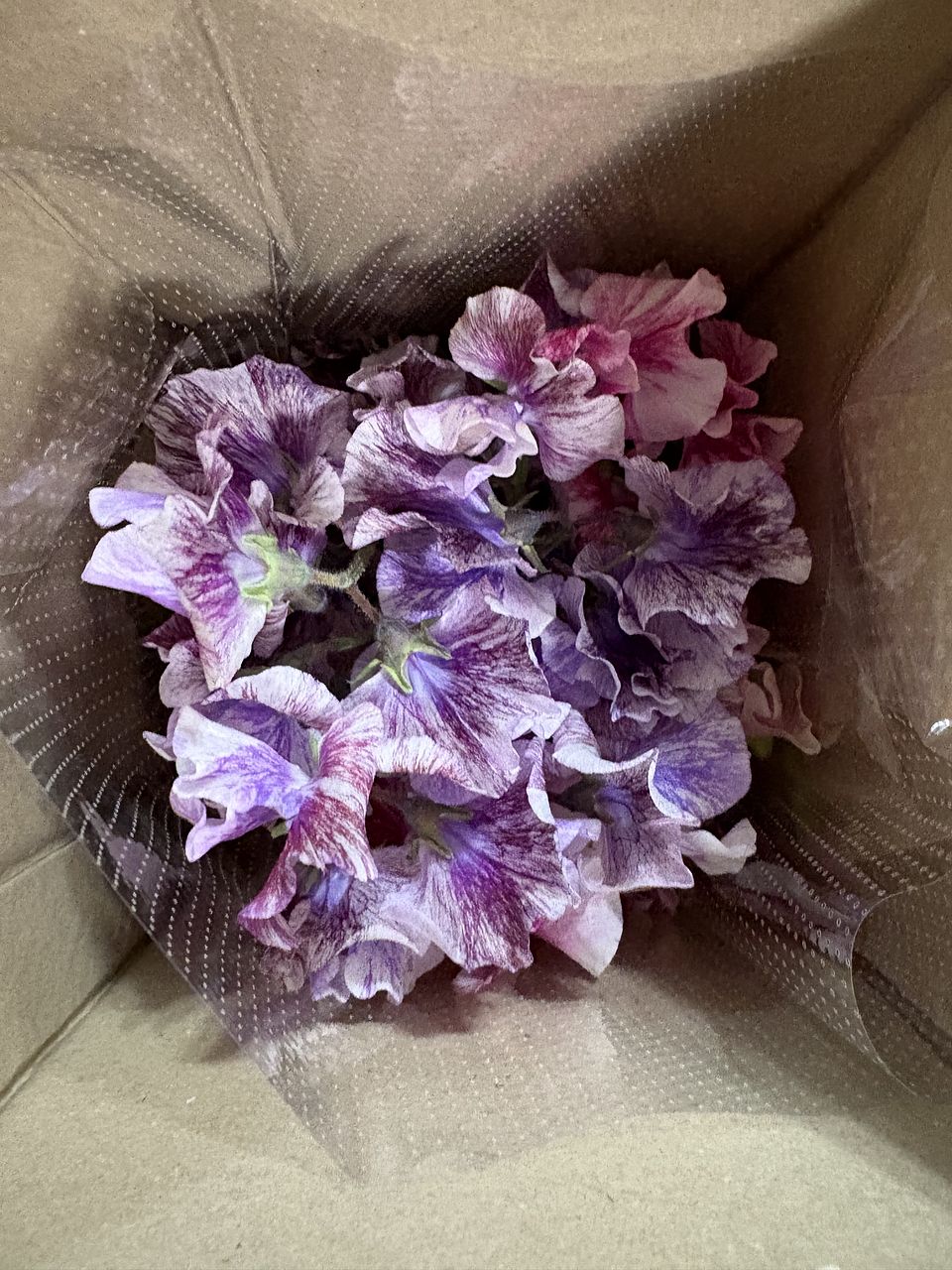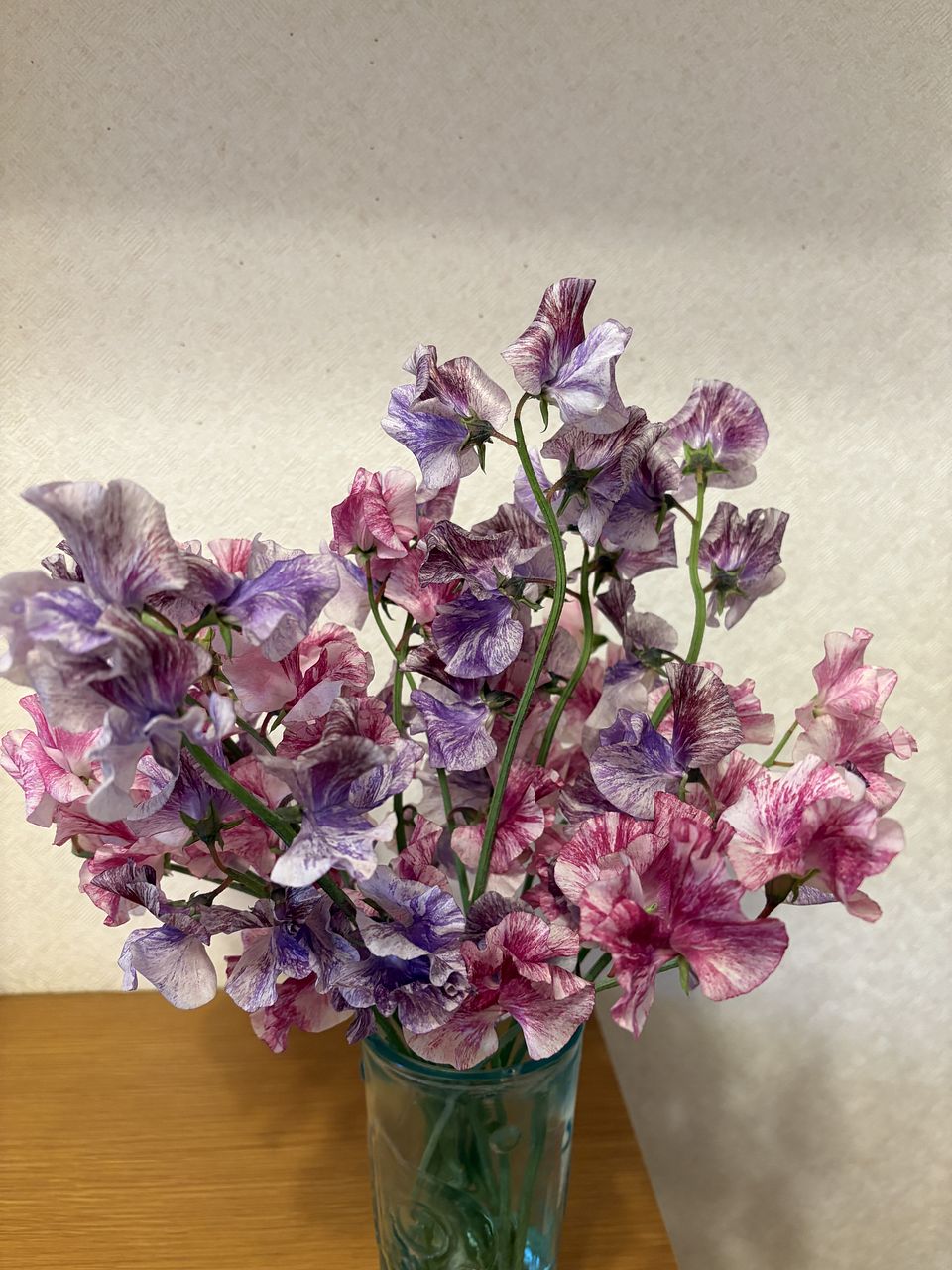 見た目もネーミングもかわいい💓スイートピー「恋かすみ」と「詩かすみ」をたっぷりと束ねました。フローリストのイチオシのスイートピーです🪸🍇