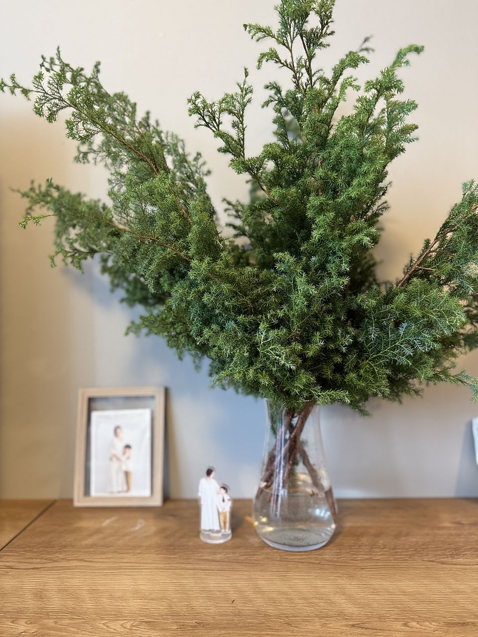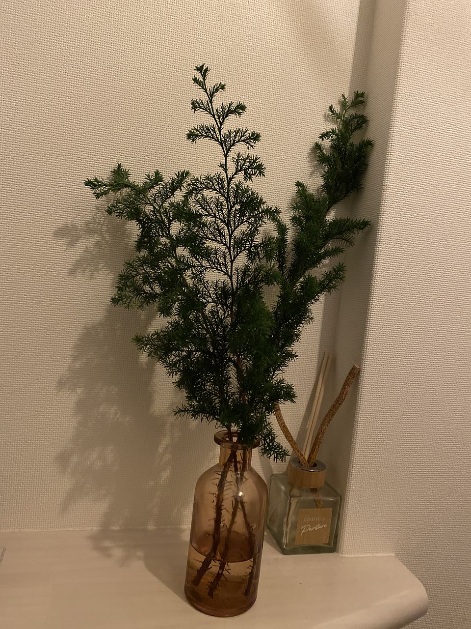 昨年も購入してとても気に入ったので、今年も購入しました。玄関の花瓶に飾り、百均の小さなオーナメントでクリスマスツリーのように飾っています。ボリュームもありますし、香りも良く、とても長持ちします。少し切り落としたものでミニツリーも作れました。来年も買いたいくらい気に入っています。