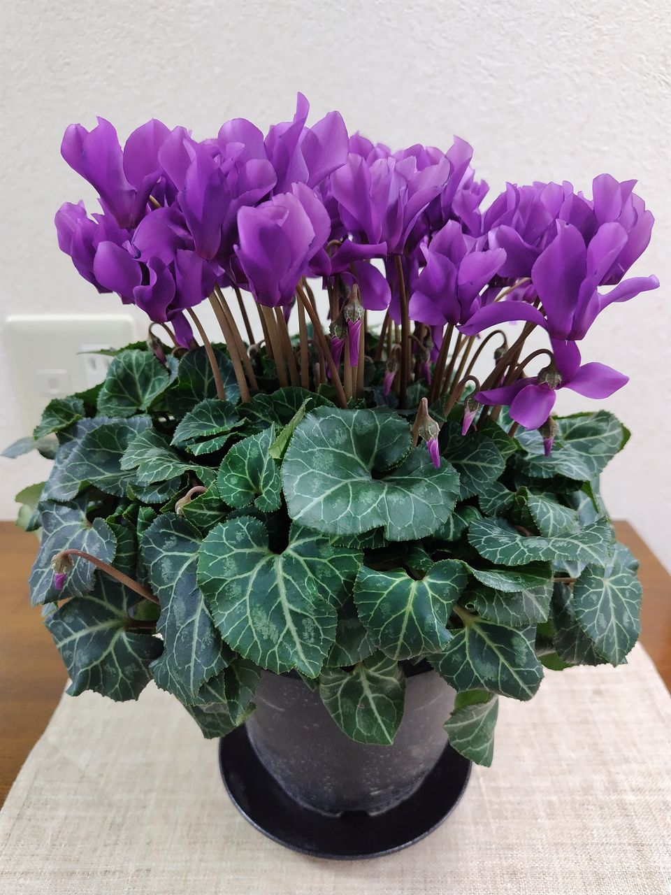 とてもきれいなシクラメンです。 葉がぎっしりで、これから出てくる小さな蕾もたくさんあり、長く楽しめそうです。