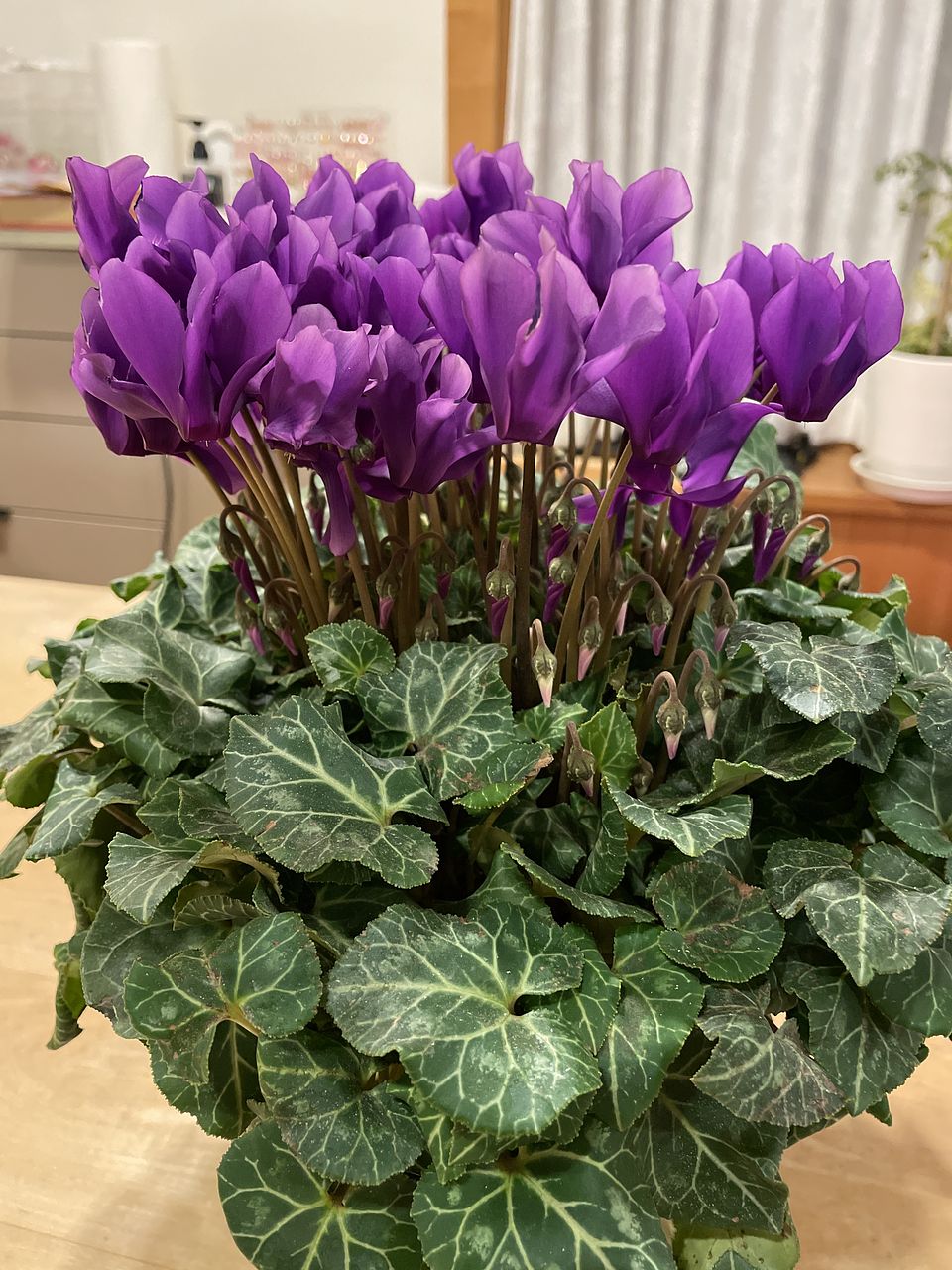 葉っぱが多くて、しっかりした良いシクラメンでした!寒い間は、家の中で楽しもうと思っています。つぼみもたくさんあるので、長く楽しめそうです♪