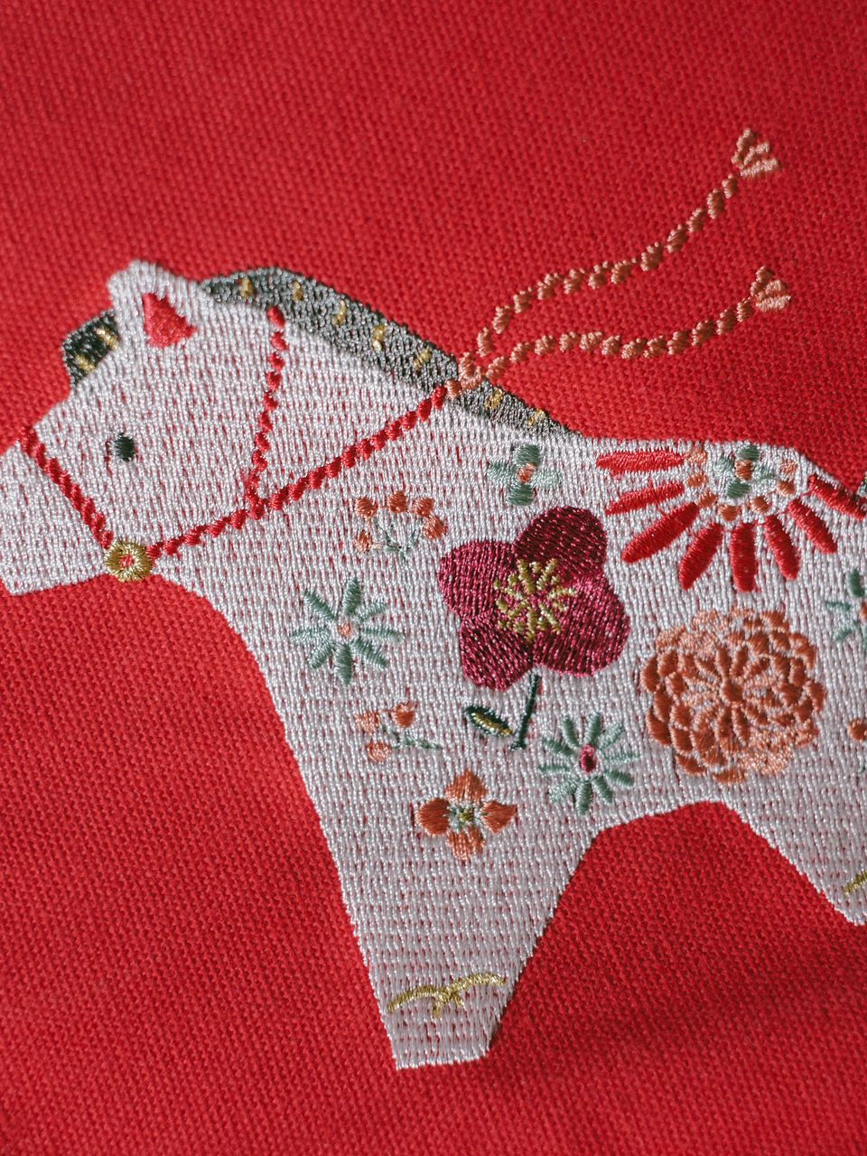 おめでたい雰囲気にぴったりな赤色と、今年の干支「午(うま)」が刺繍された高級感のあるタペストリーです。玄関やお部屋に飾って、新年の迎える準備をしませんか?