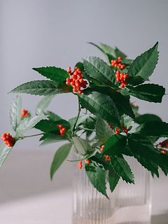 お正月飾りの縁起ものとして、葉形が小判に似ていることから千両と言われ、昔から愛されている枝物です。