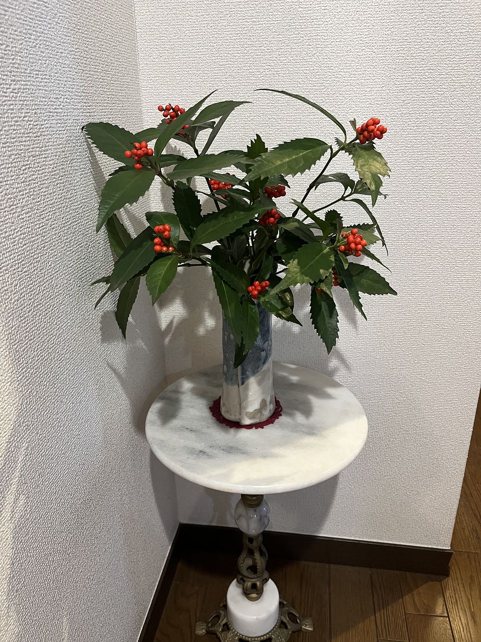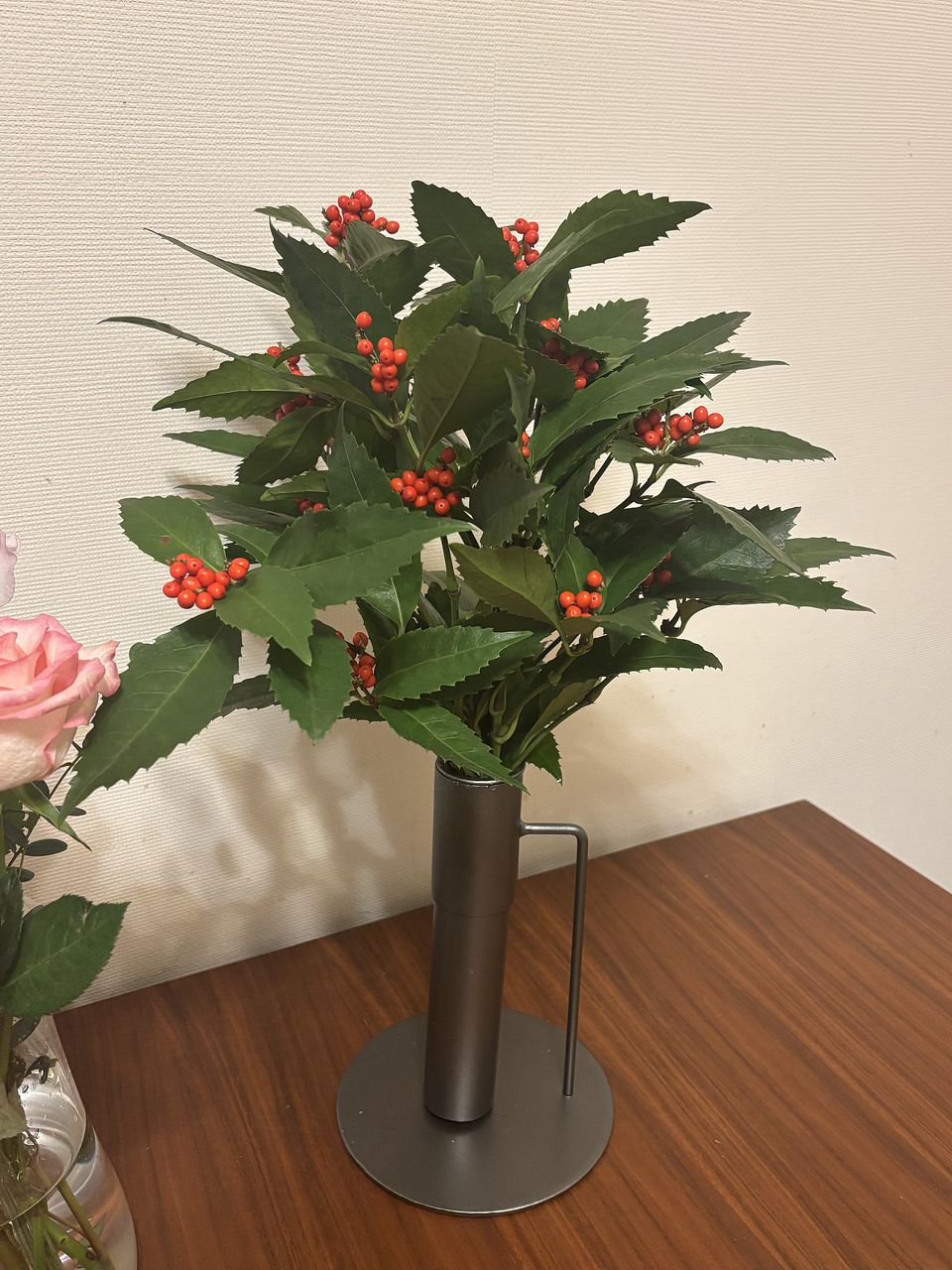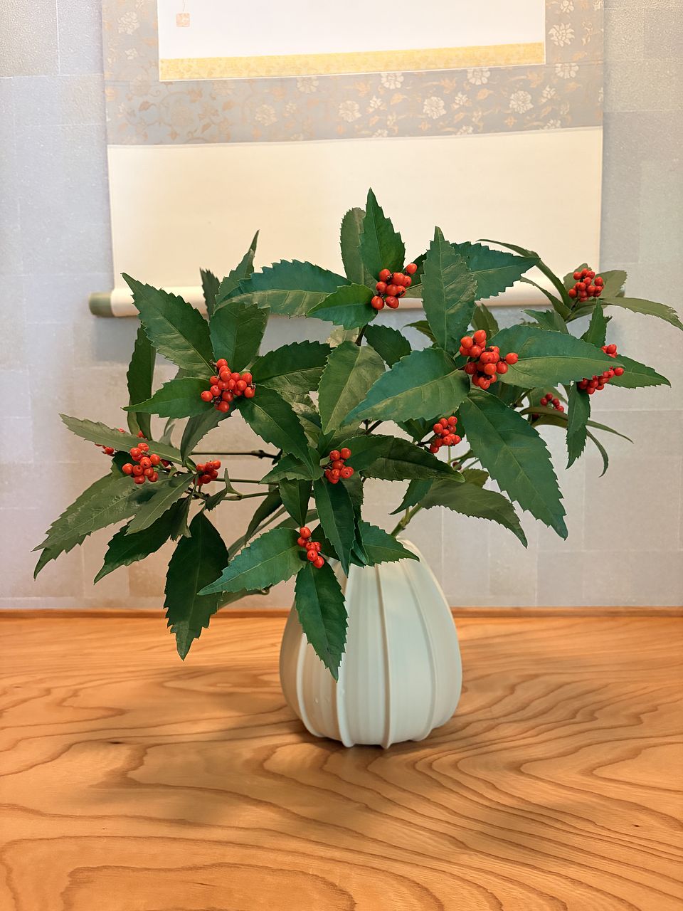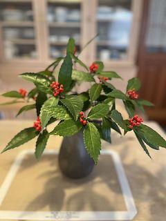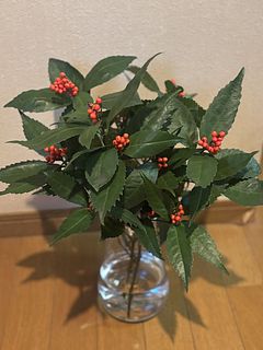 届いた日はクリスマス直前でしたが赤い実がついているので和のお花も素敵だなと思いました。