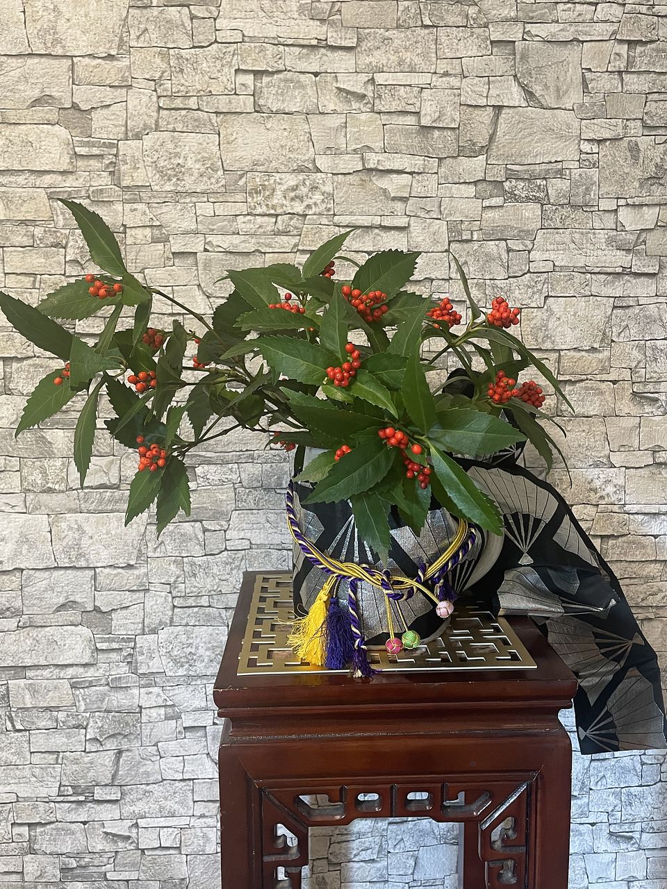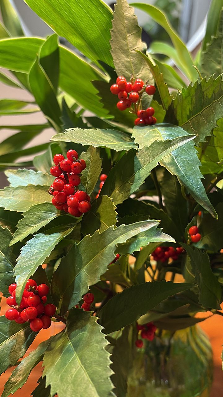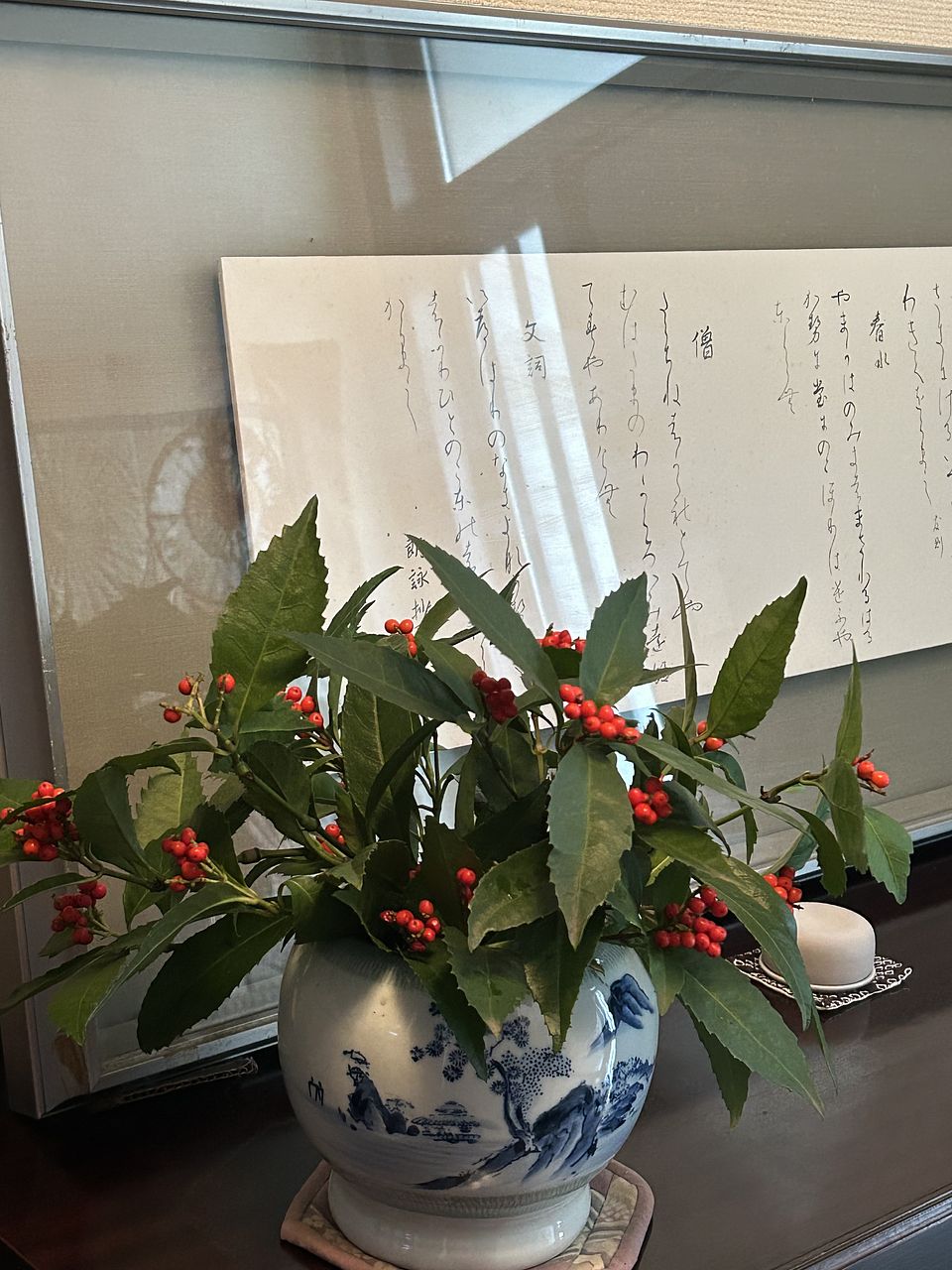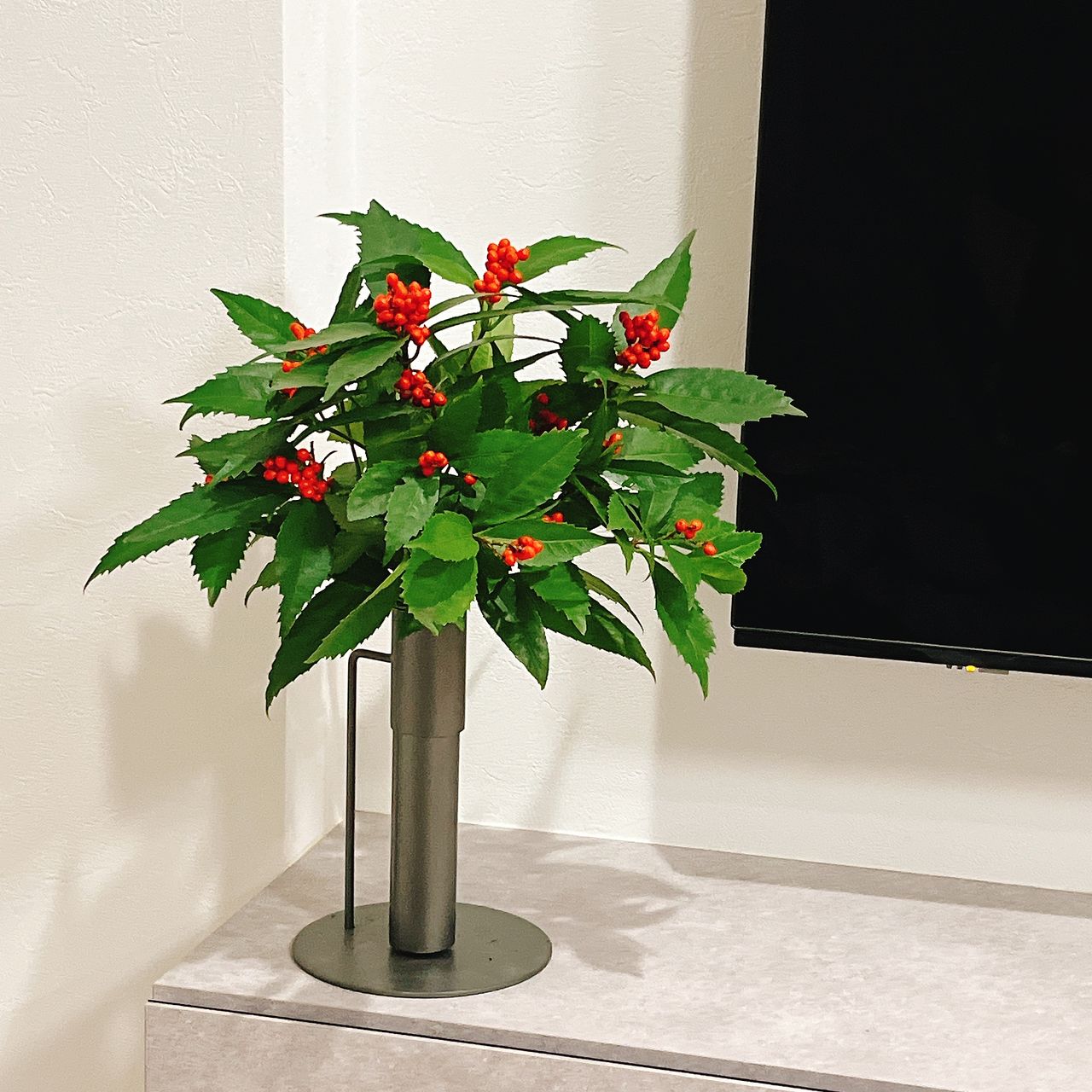 届いた日はクリスマス直前でしたが赤い実がついているので和のお花も素敵だなと思いました。