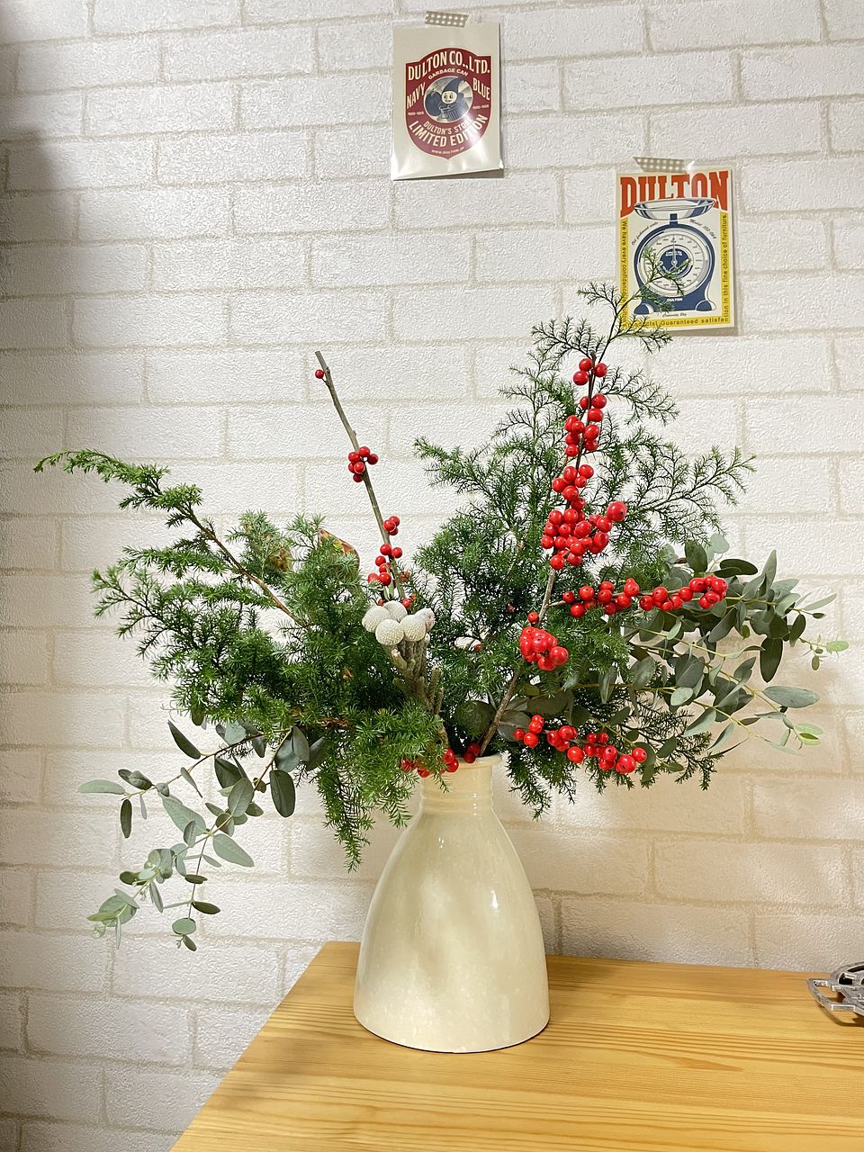 イメージ通りの新鮮なお花が届きました。不器用な私でも、それなりに素敵に挿すことができました。 ウィンターベリーはいくつかポロポロと取れてしまったけれど、余った他の枝たちと一緒にお皿に飾ればクリスマスっぽくなってくれました。大満足です!