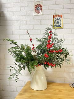 とてもフレッシュ状態で届きました。 ただ残念なことは、杉のボリュームが少なく感じたこと。またシルバーブルニアは2本入っていましたが、それぞれ2個と3個の花しかついておらず寂しい印象です。ウインターベリーの赤い実は届いた時にたくさん落ちていましたが、それでも枝にたくさん残っていたのでホッとしました。 数日は花瓶にさして楽しみます。