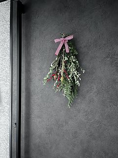 思った以上にボリュームがあって感動しました。 年末にかけてピッタリのスワッグで部屋が明るくなりました。アレンジによってはお正月も使えそうな、素敵な組み合わせでした!