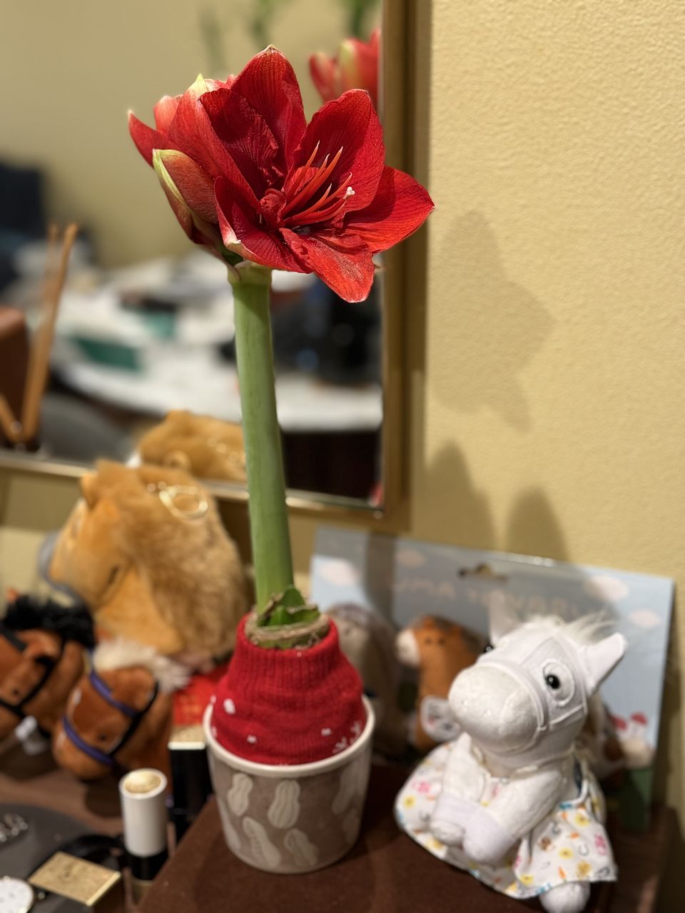 2026/2/9 蕾の先端から赤い色が見えてきました。
