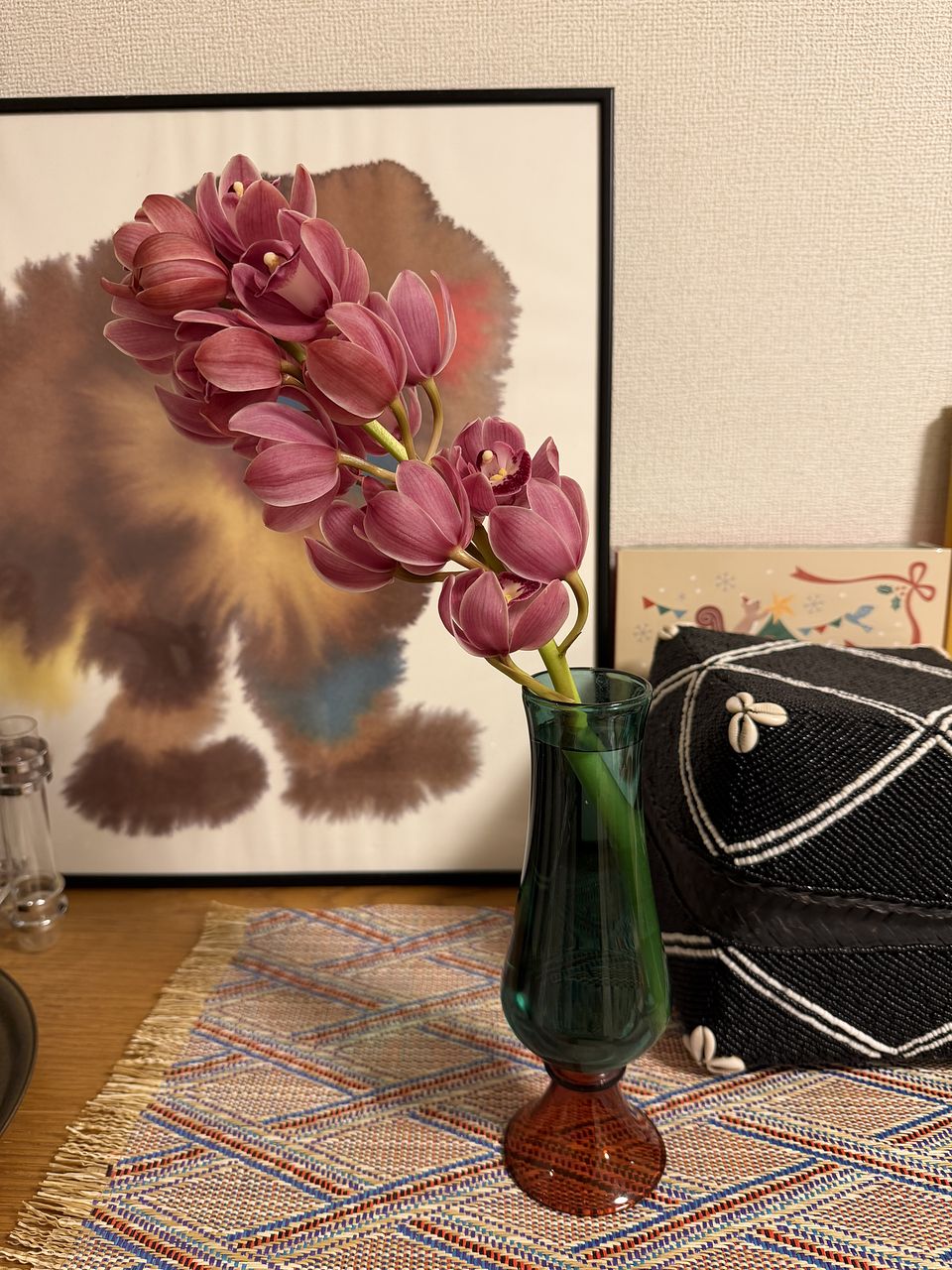 とても立派なお花が届きました。シンビジウムは子どもの頃に漫画で知ったお花で、私にとって特別なものです。石田蘭園さん、フラワーさん、ありがとうございました