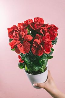 赤いポインセチアの花言葉は「祝福」「幸運を祈る」。今年は少し珍しいポインセチアを飾ってみて❣️
