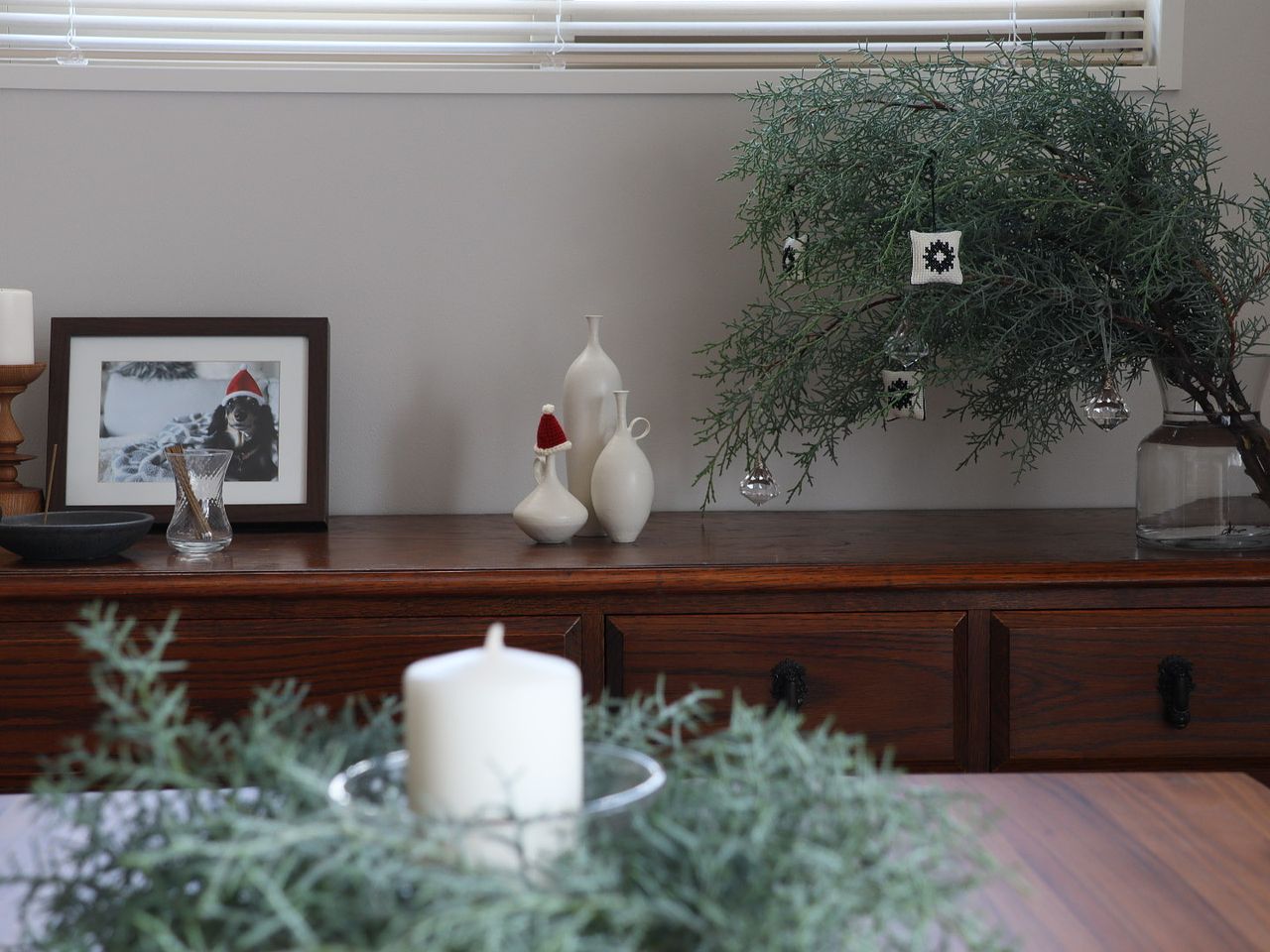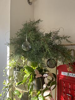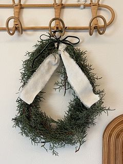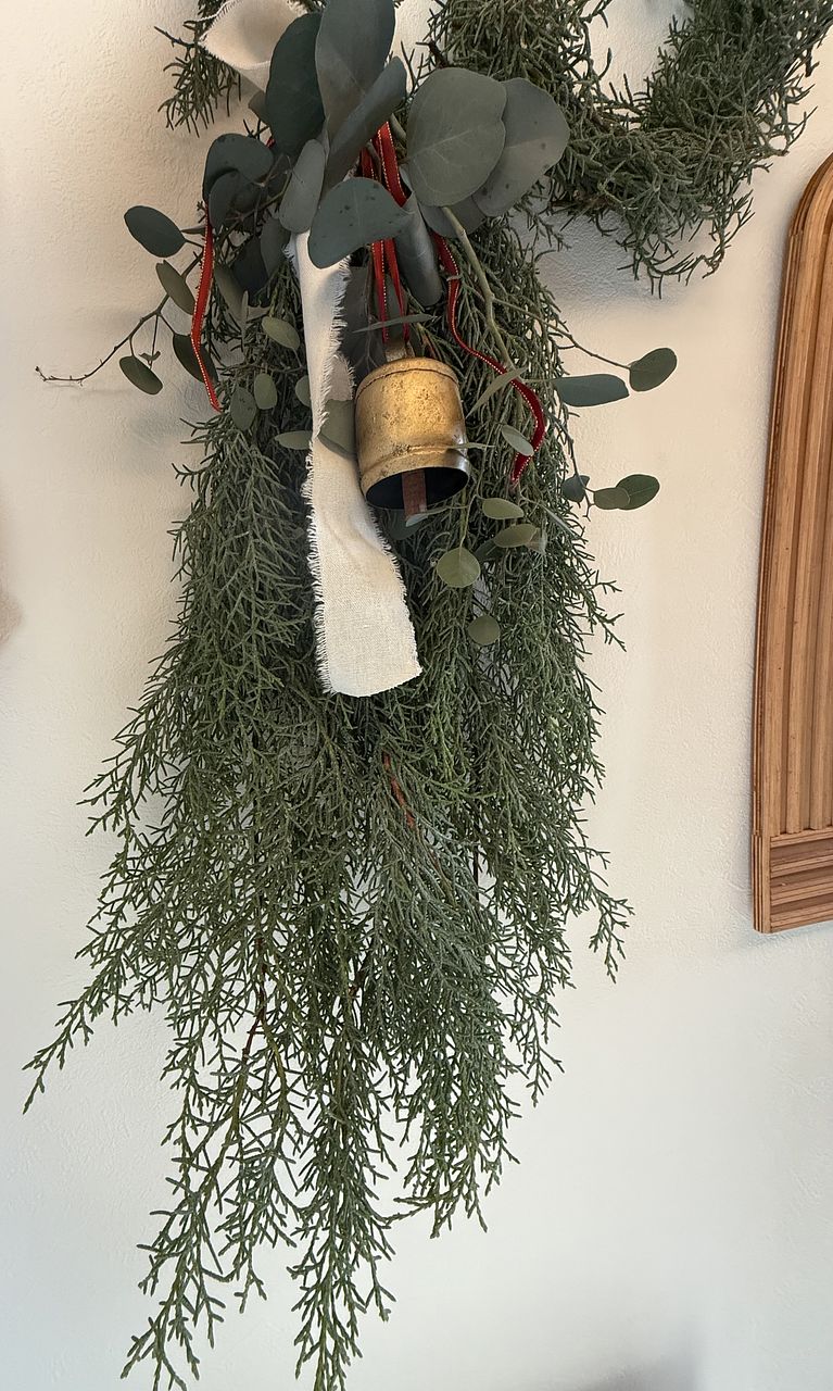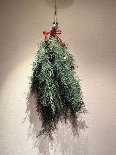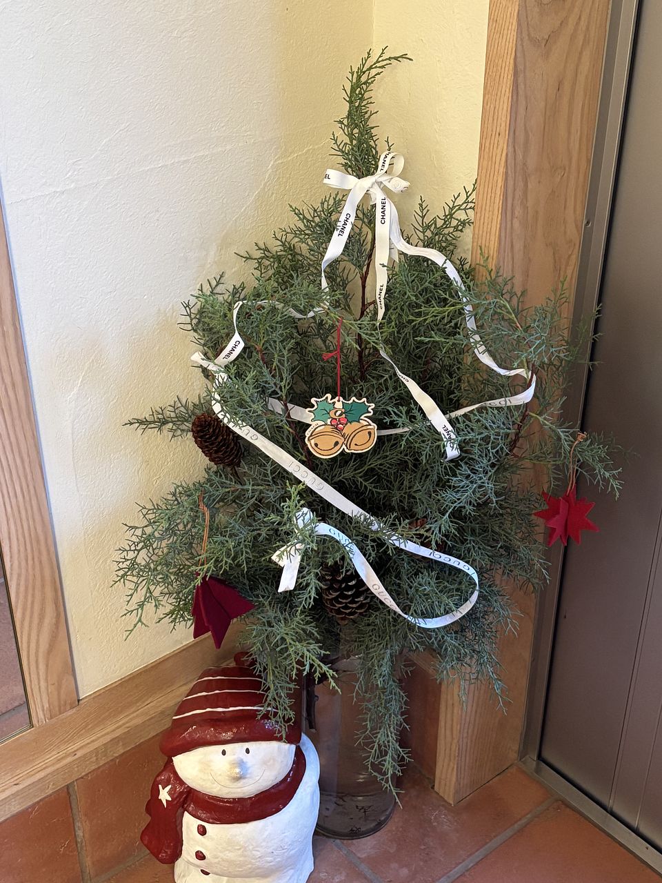 早速スワッグ初挑戦。香りがよくボリュームもあり もともと飾っていたホワイト系のドライフラワーを混合して可愛いものが出来上がりました。ミニツリーも作り満足🌲 部屋の中にグリーンがあってとても浄化されます。