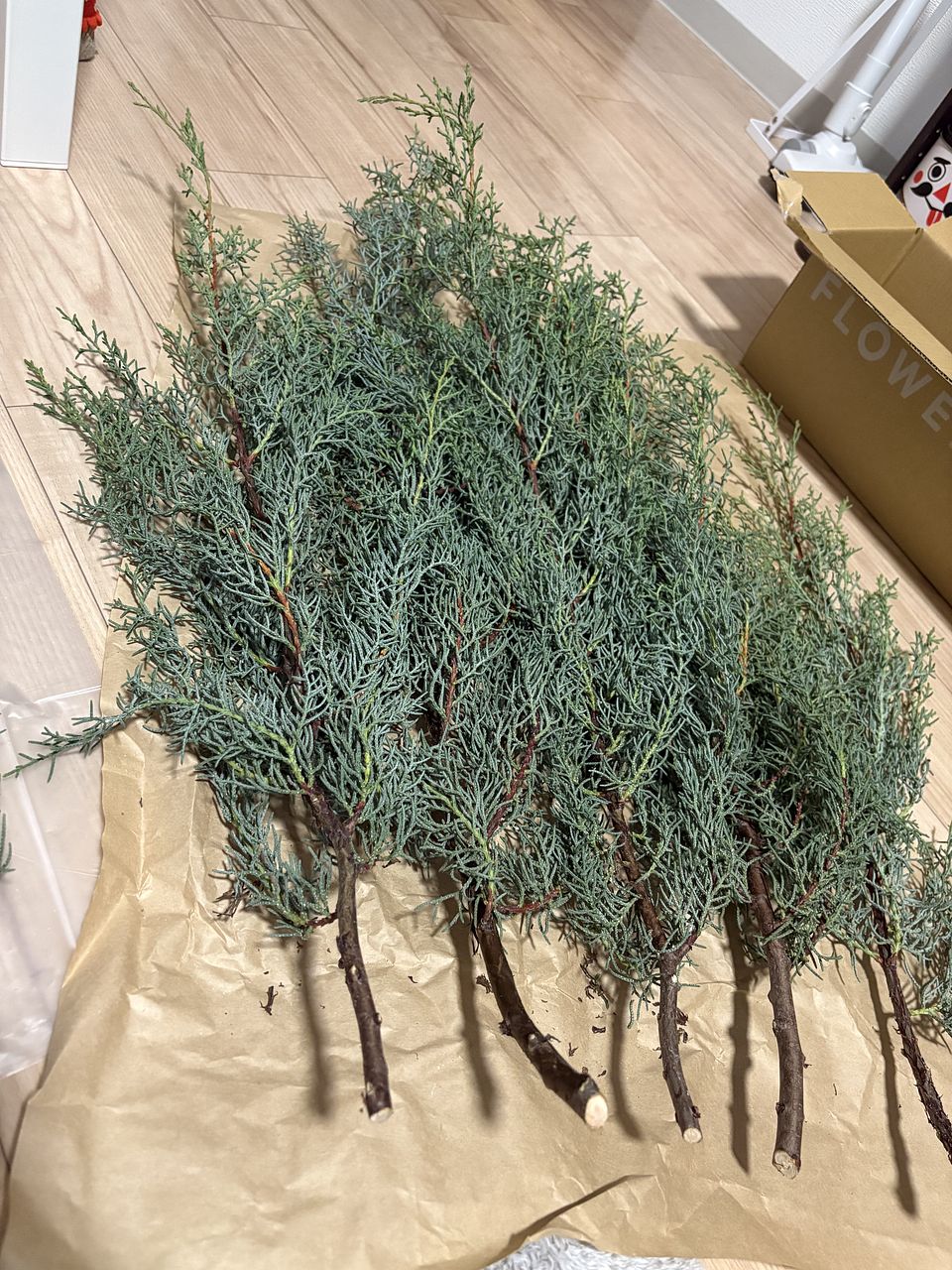 本日届きました!🌲 ボリュームが凄いです✨生き生きして あと、香りが爽やかすぎるいっきにお部屋がマイナスイオン発生✨楽しみたいです😊