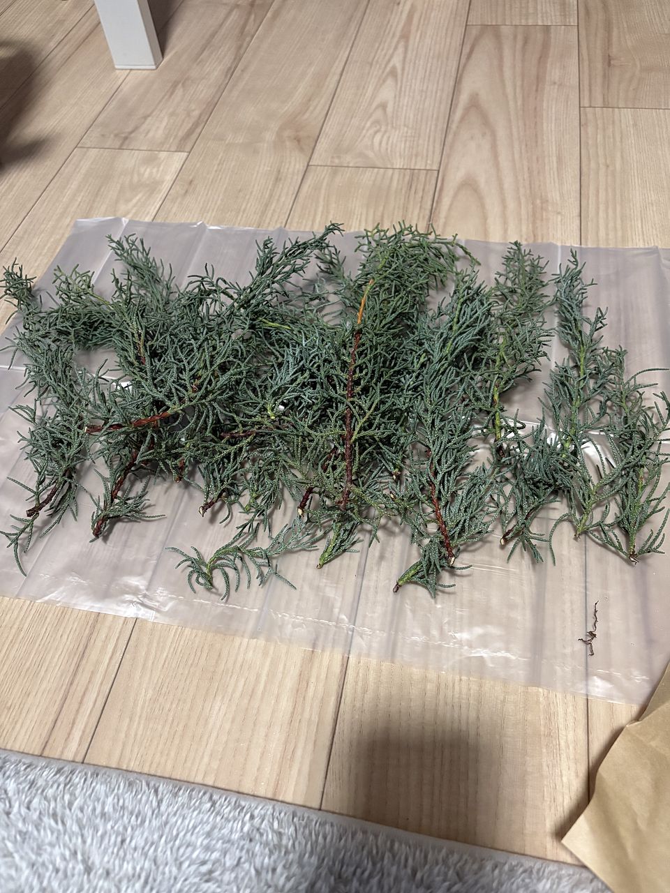 たっぷりでどこに置こうか悩みましたが、リースにすることにしました!香りも家中が森林浴しているようで、幸せ満点です