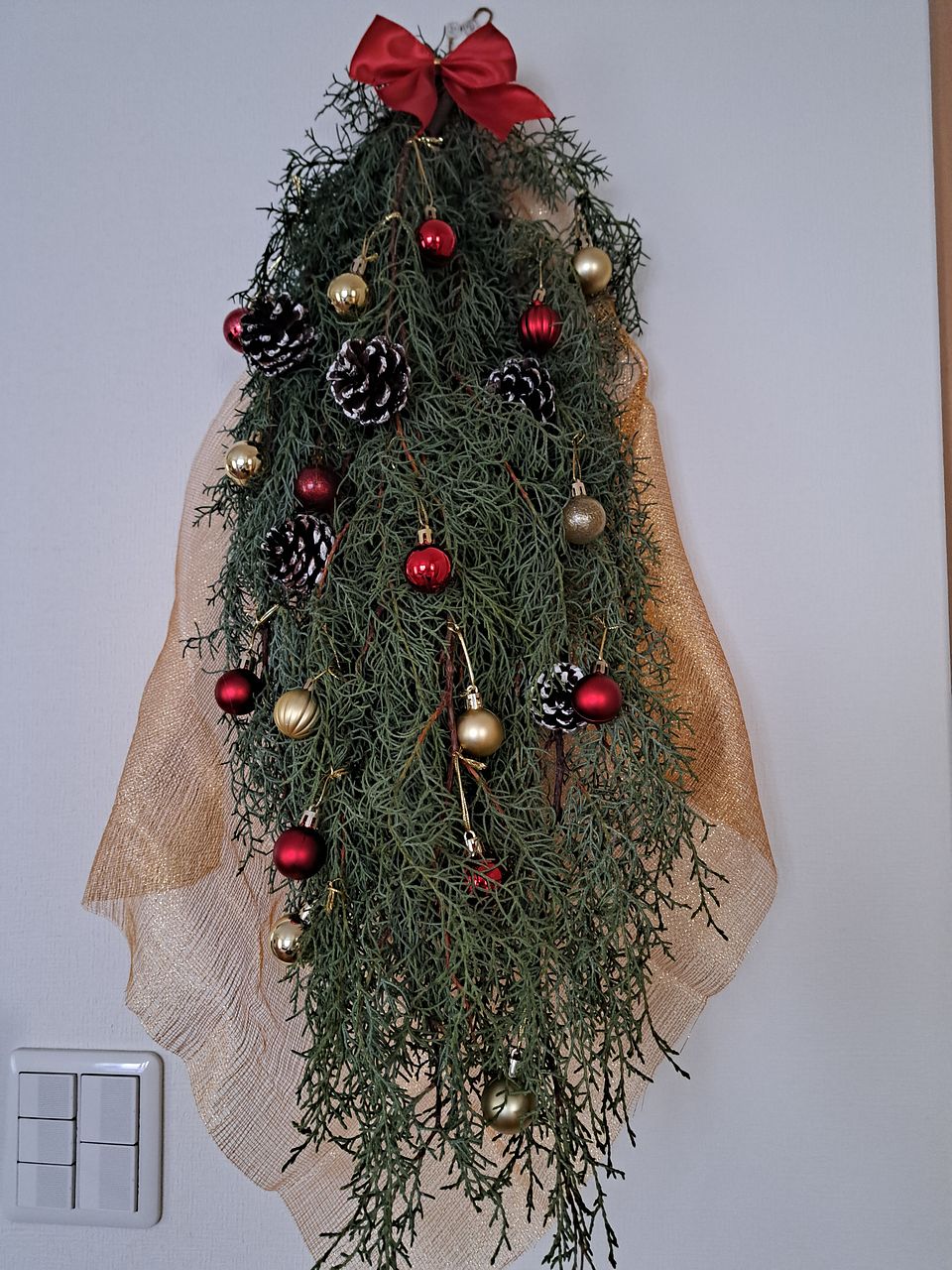 ボリュームもあり満足です。これでクリスマススワッグ風に作ってみました。娘と一緒に作れたのも楽しかったです