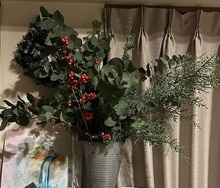 今回セレクトした枝物は、赤い実がかわいい「ウィンターベリー」、ロングサイズの「ひむろ杉」「ブルーアイス」「ユーカリ」と盛りだくさん🌲クリスマスオーナメントを吊るせばお部屋が一気にホリデームードに✨🎁