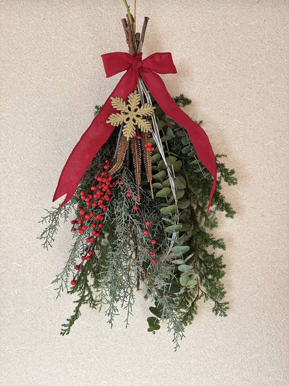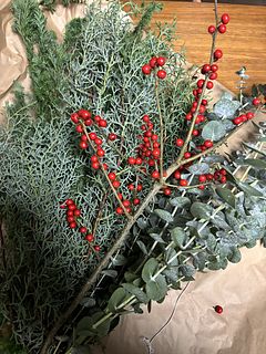 開けた瞬間から緑の良い香り ボリュームもすごく、下葉の処理で小さめのスワッグが作れました 欲を言うと赤い実がもうひと枝あっても良かったかなー