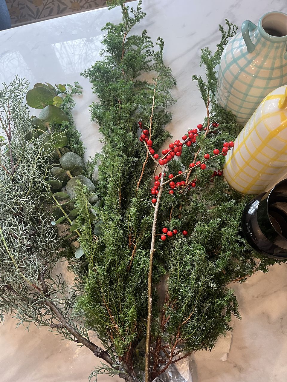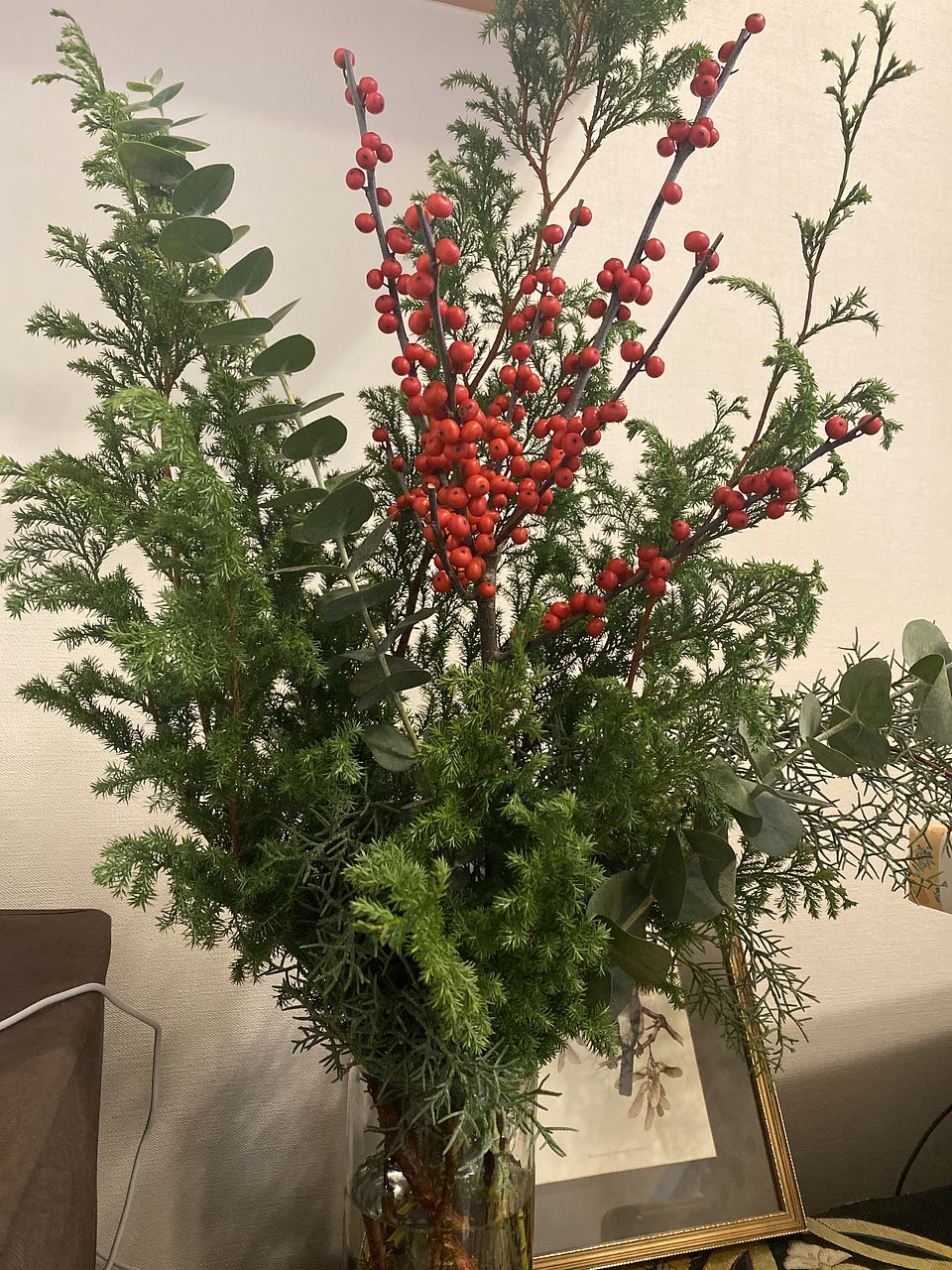 新鮮で凄いボリュームでした🌲 3つに分けて飾りました! 赤い実がアクセントになっていて可愛いです❤️