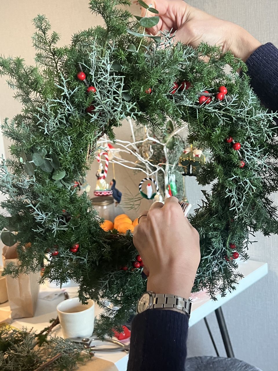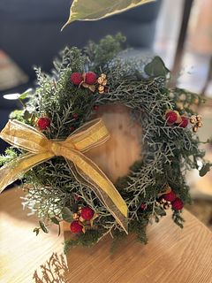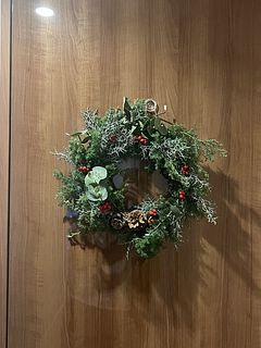 たっぷりボリュームがあり期待以上です。 さっそくリースを作ってみました。 グリーンだけど、それだけでクリスマスの 気分になれます。