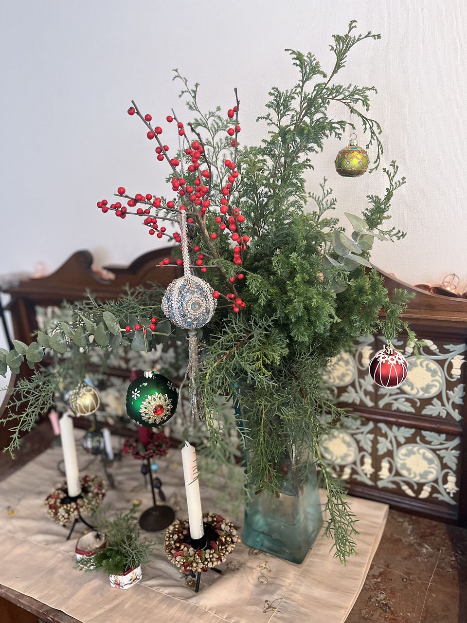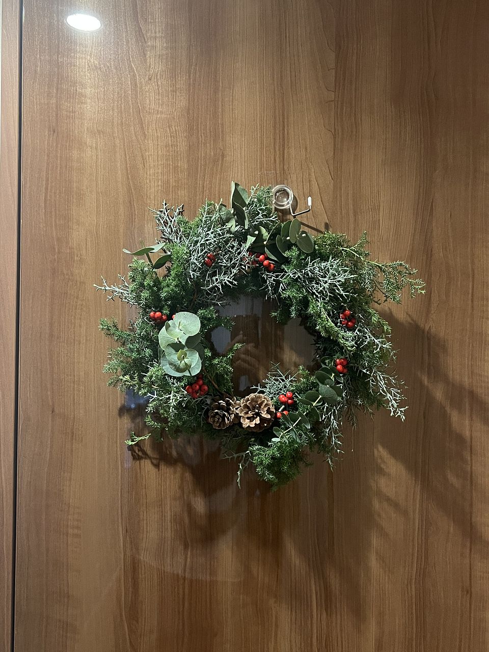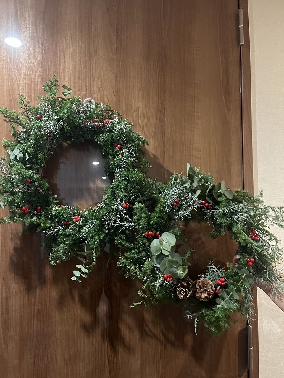ボリュームがあり、いくつもアレンジができました!玄関にはロングサイズを使ったのでステキなクリスマスのおもてなしになりました。