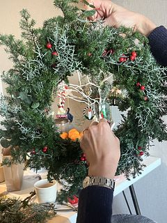 ここ数年、グリーンに飾り付けをして我が家のクリスマスツリーに。ボリュームたっぷりのグリーン。花瓶の水に浸かるところカットしていくとそれだけで結構な量に。もしかしてこれも使ってリースにと。 このお値段でツリーとリースに。大満足です。