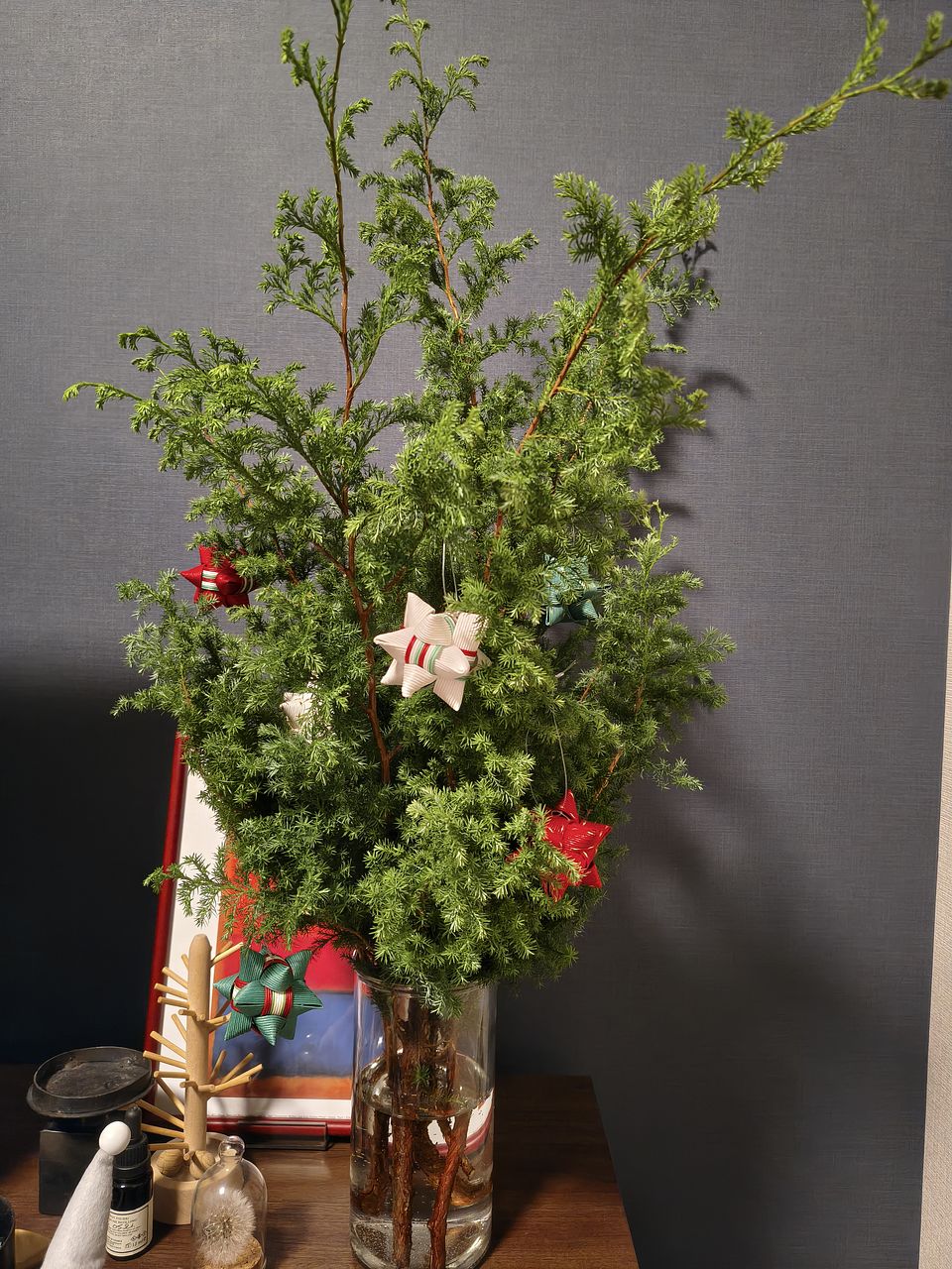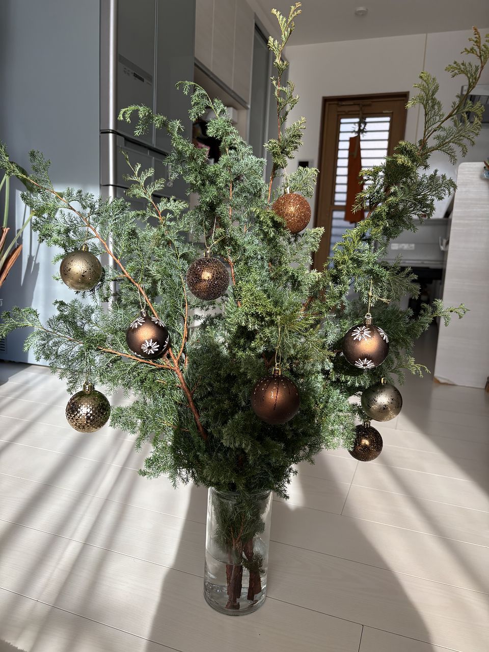 めちゃくちゃよかったです♡ 驚きのボリュームで、綺麗にバランスよくいけるのにかなり試行錯誤しましたが、オーナメントをつけてこんなに可愛くなりました!今年は赤ちゃんがいてツリーを飾れない(倒される😅)ので、花器に飾るクリスマスツリーでクリスマスのわくわく気分をもりあげていきたいと思います!!!