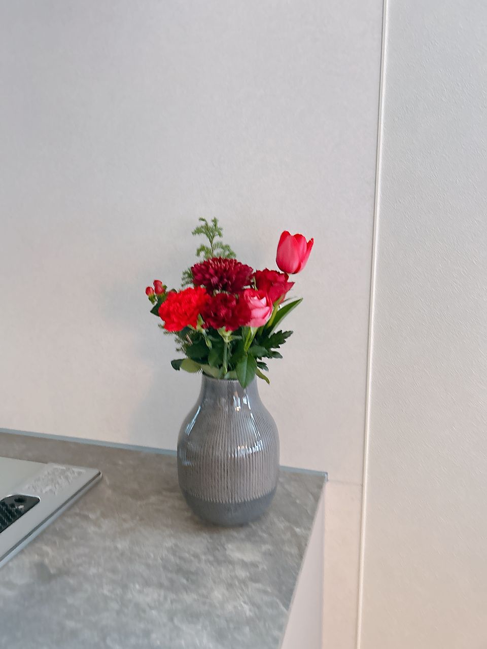 旬のバラやマム、カーネーションをを贅沢に束ねました。一輪一輪咲き方や色が異なり、幾重にも重なる花びらが美しい🥰