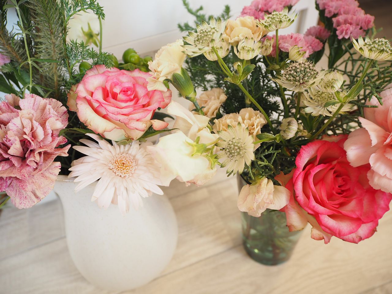まず茎先をカットし、茎の7〜8割が浸かるイメージで深いお水に数時間つけてあげて。水圧で花に水が届きます。水揚げが完了したら、毎日のお世話は浅水〜中くらいの水量で。水換えはこまめにしてあげましょう。切花の栄養剤を使うと、バクテリアの増加を減らせるのでおすすめです。