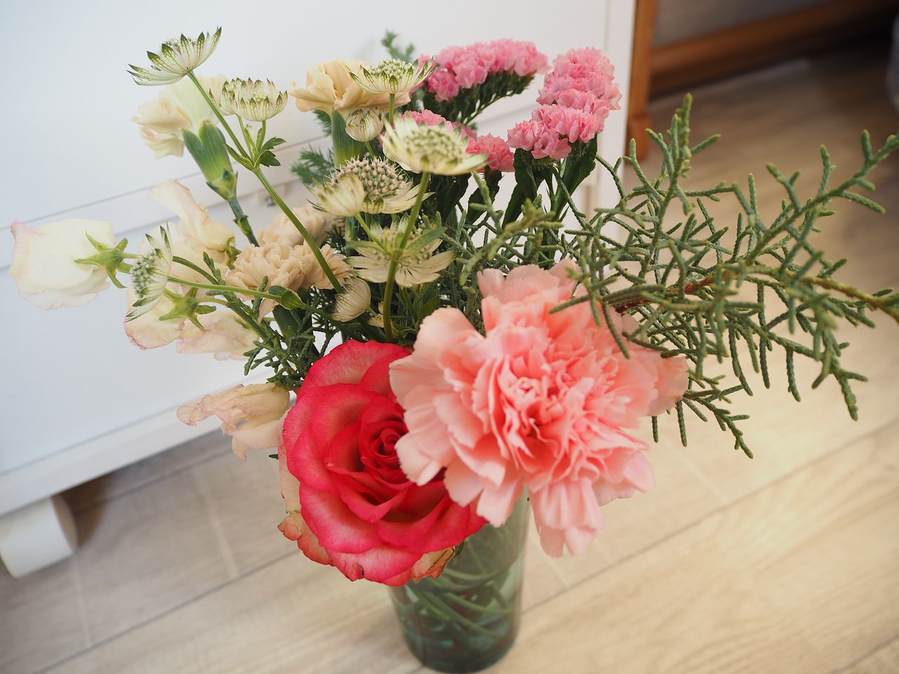 お花は長旅でお疲れぎみ。届いたら水揚げをしてたっぷりお水を与えてあげましょう。お花屋さんになった気分でお手入れしてみて😉