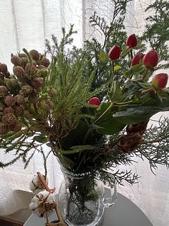 初めてネットでお花を頼んでみました! 思ってたよりボリュームがあって、満足です。 いつもお花屋さんに全てして貰うので、自分でスワッグにするのは初!なかなか納得いく感じにはならず悪戦苦闘💦 徐々に上手くなるかな?! また頼んでみようと思っています。