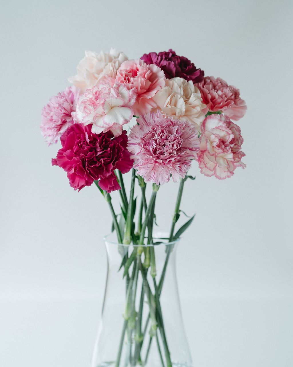 ラブリーなピンクのカーネーションの花言葉は「感謝」。