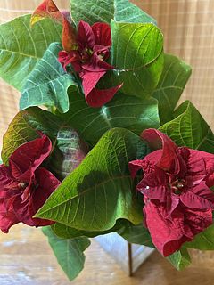 お写真のような大輪ではなく、葉が沢山あり ちょこんとポインセチア🎄でしたが 切花のポインセチアは店舗ではあまり見かけないのでお出迎え出来て❤️良かったです。 また、土が苦手な私には切花が嬉しい😃❤️ クリスマス🎄気分を楽しみますね❤️