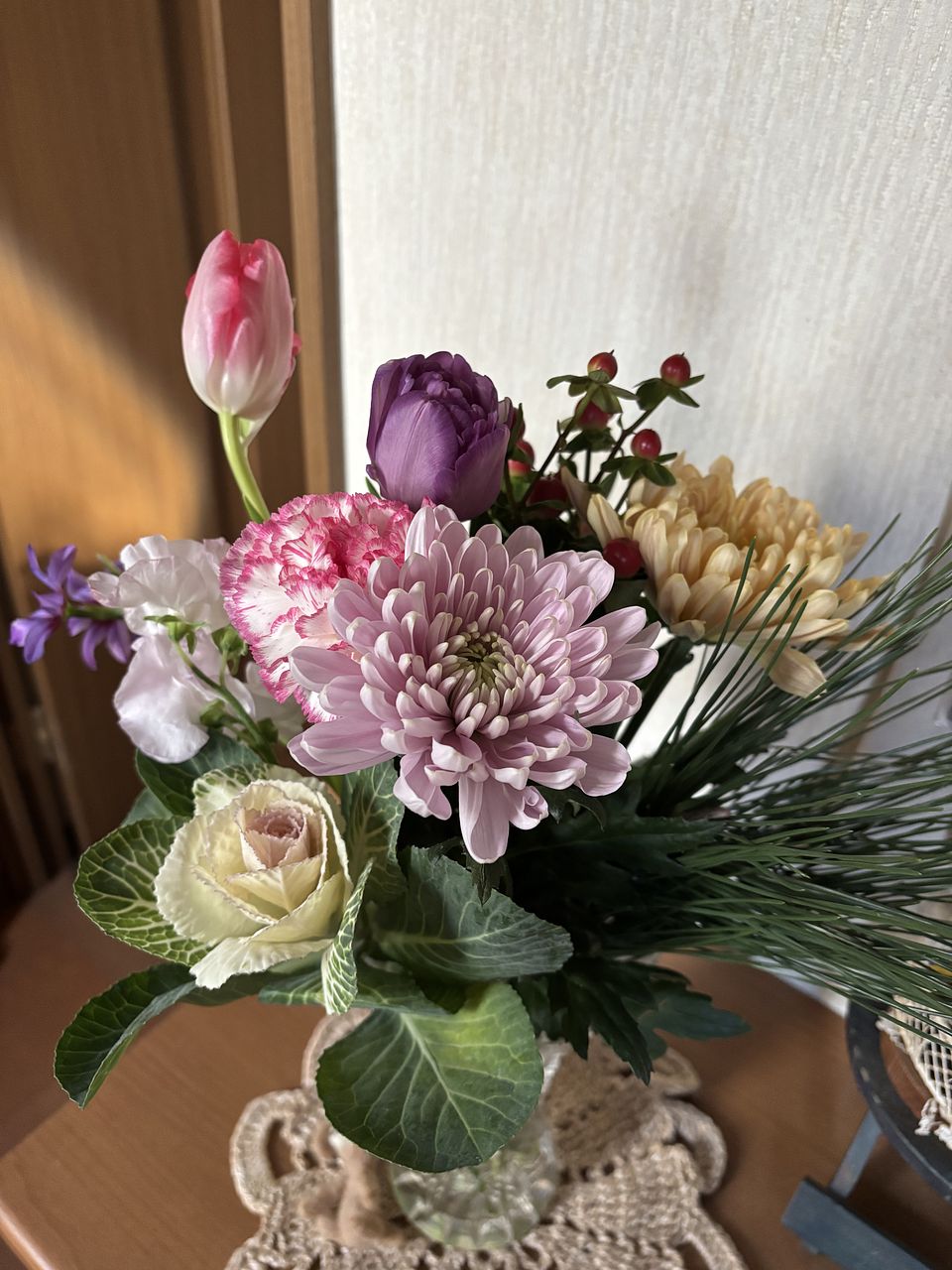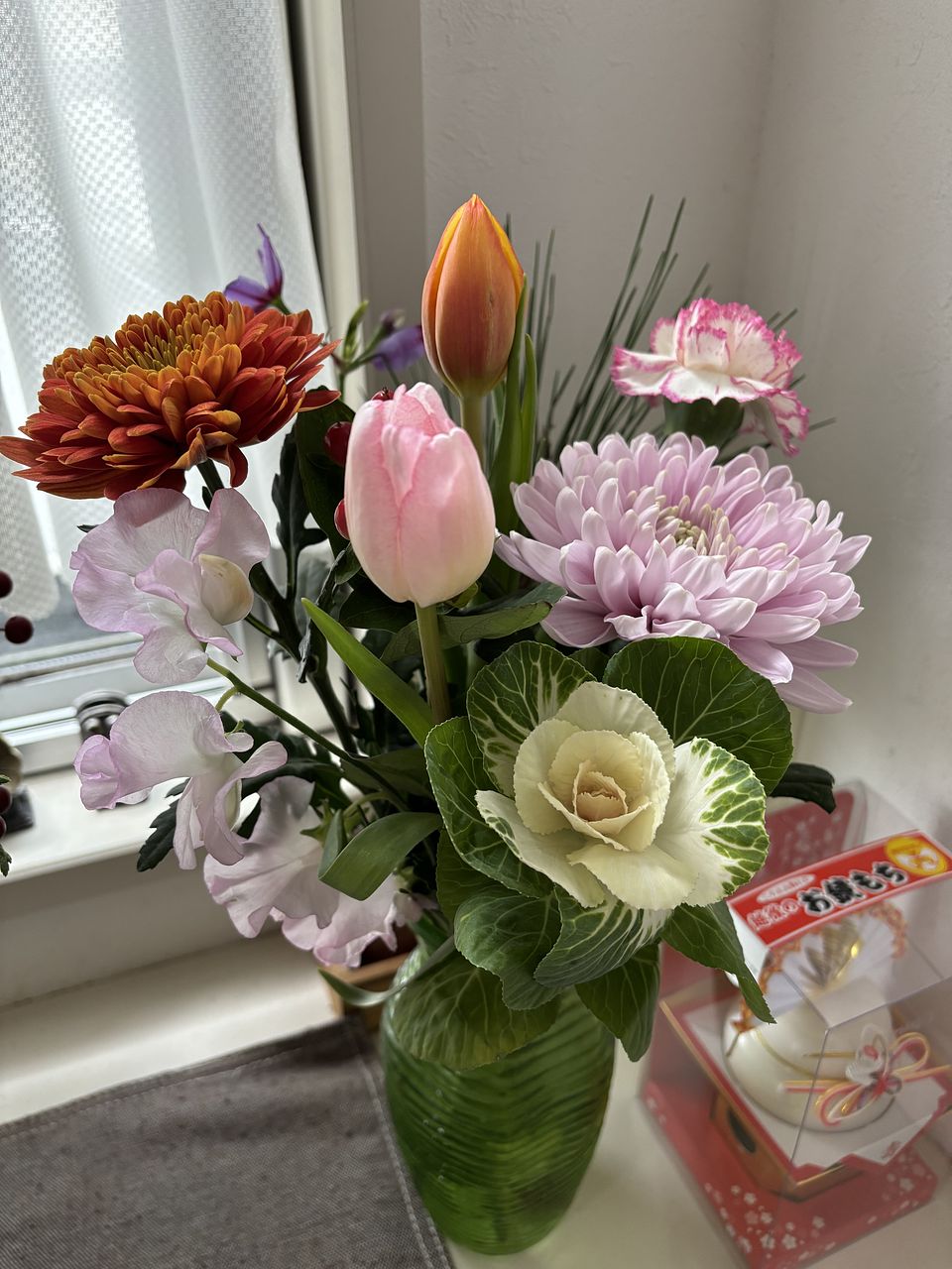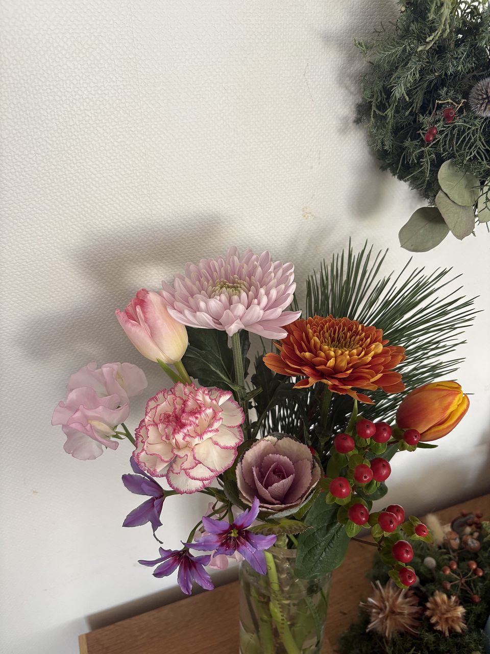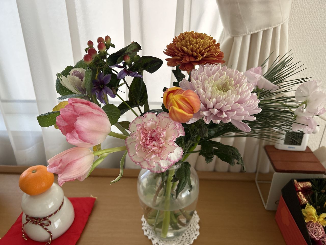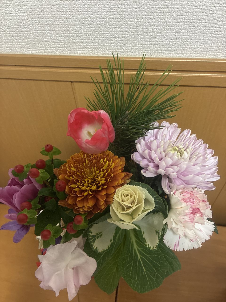 自分では選ばない組み合わせのブーケで、お正月らしくて玄関が華やかになりました。