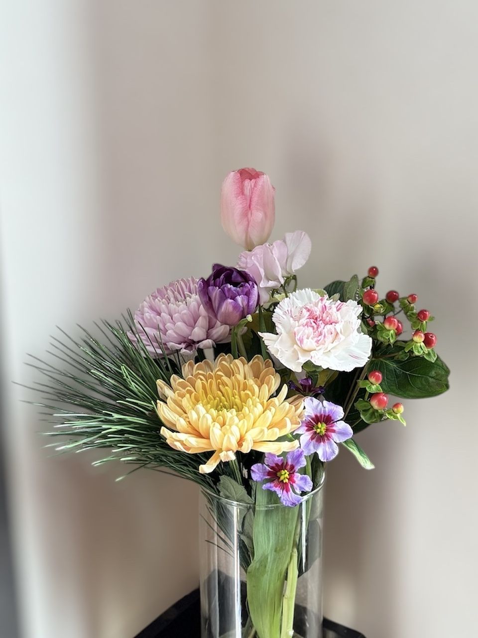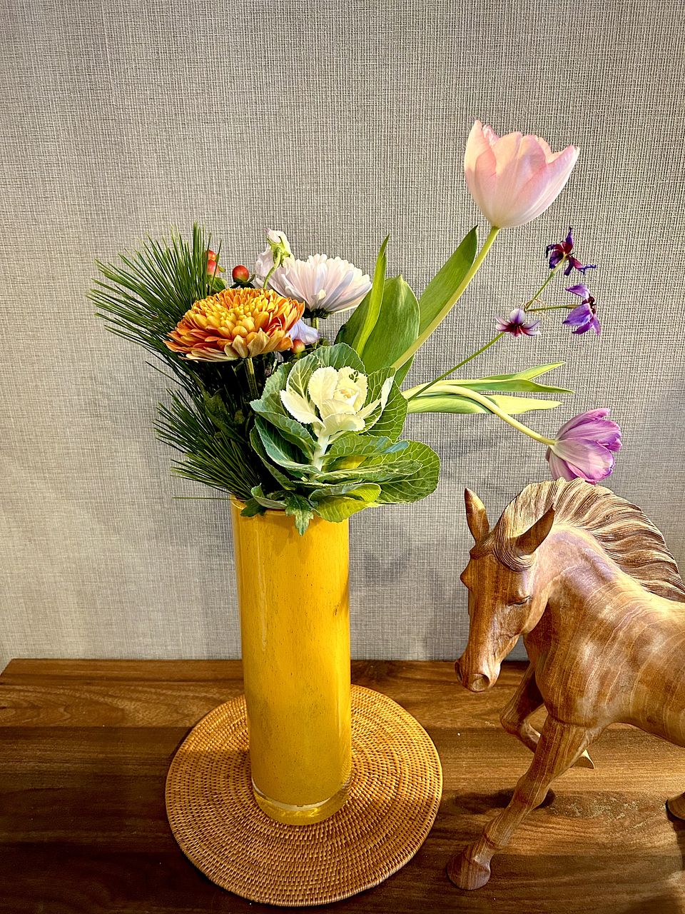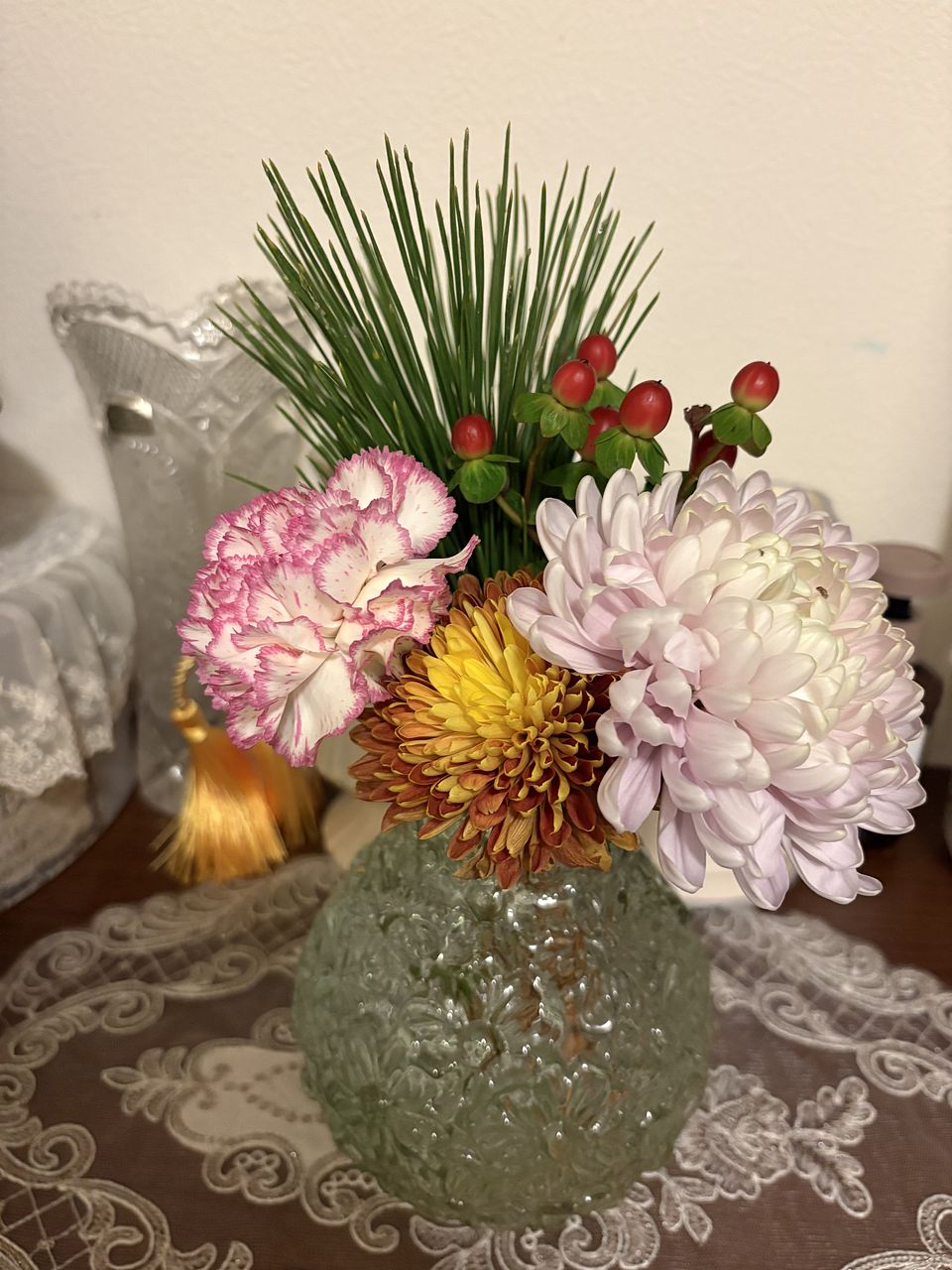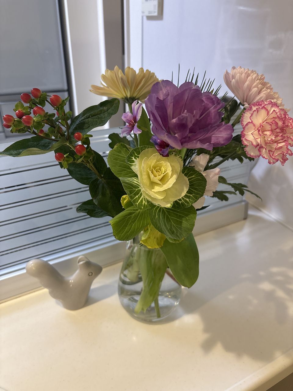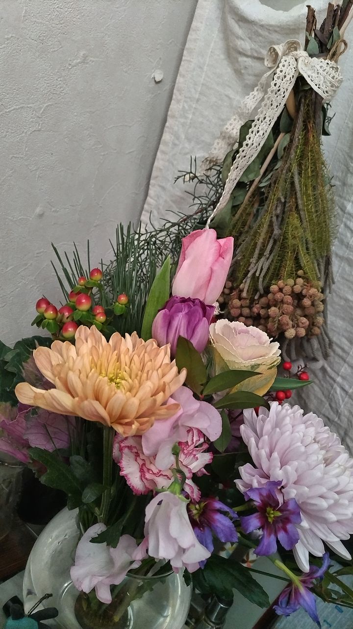 自分では選ばない組み合わせのブーケで、お正月らしくて玄関が華やかになりました。