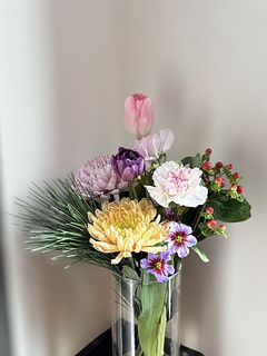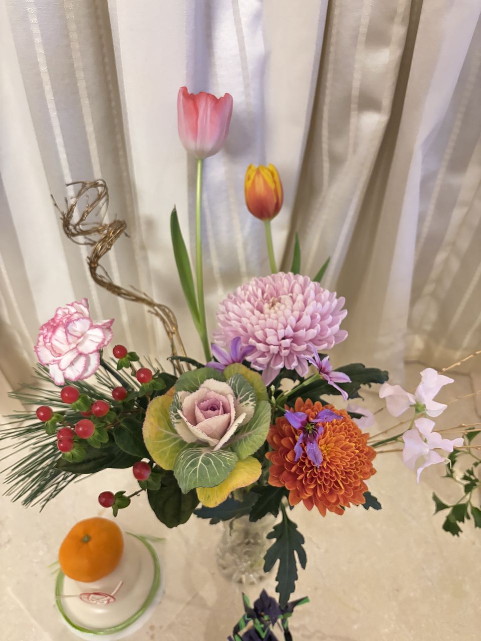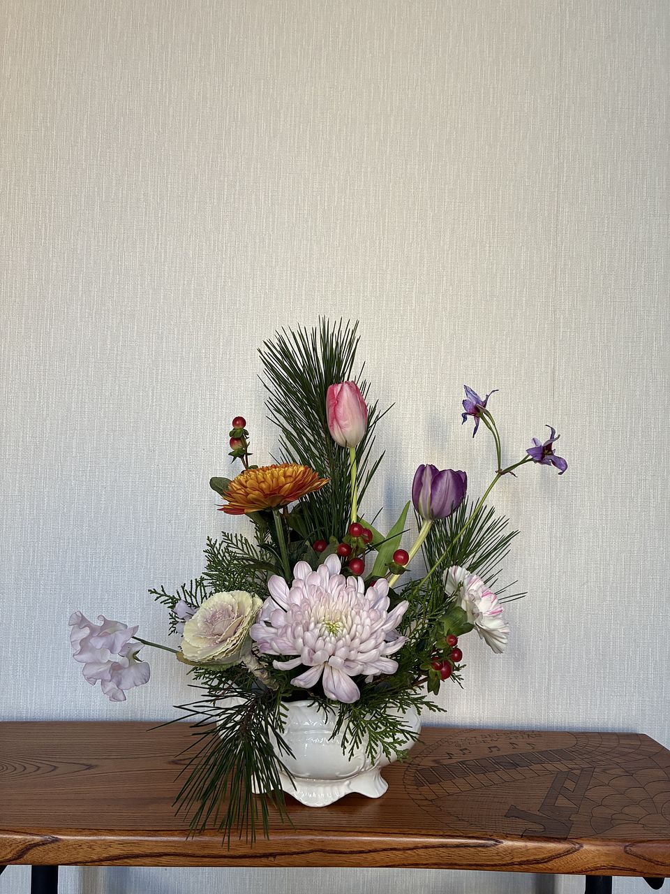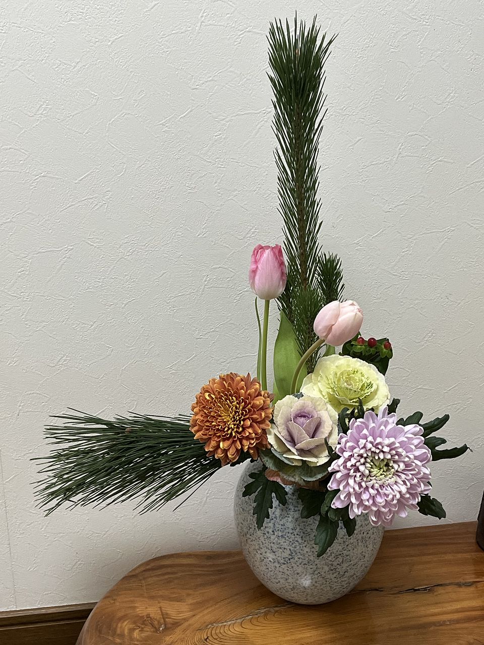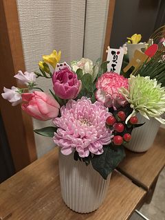 菊がとてもきれいで、和洋どちらにも合う感じでした。チューリップも素敵で大満足です。手持ちのものと合わせました。