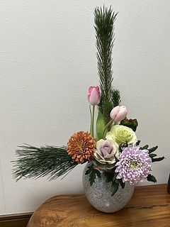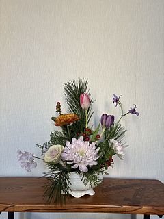 お花の組み合わせも鮮度もとても良かったです。 ただ縁起物の松が曲がっていたのが残念でした。