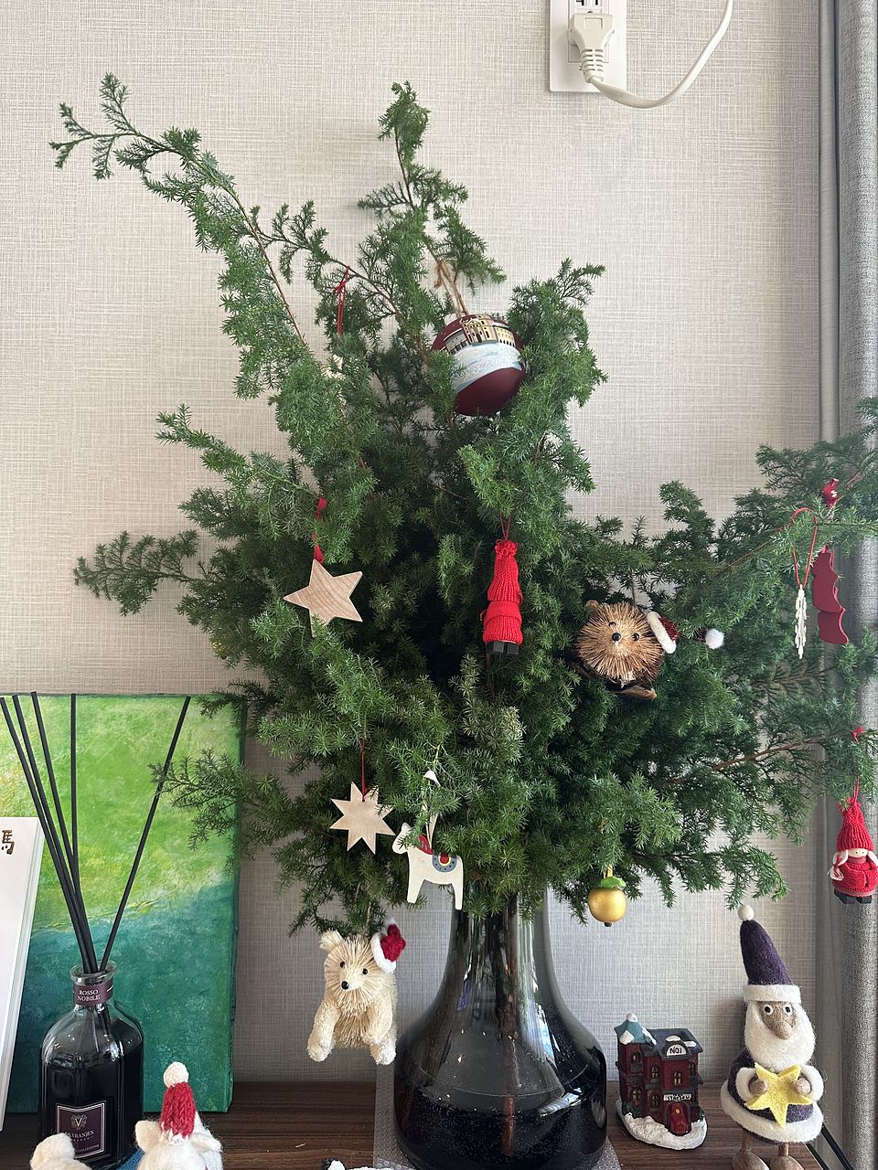 めちゃくちゃよかったです♡ 驚きのボリュームで、綺麗にバランスよくいけるのにかなり試行錯誤しましたが、オーナメントをつけてこんなに可愛くなりました!今年は赤ちゃんがいてツリーを飾れない(倒される😅)ので、花器に飾るクリスマスツリーでクリスマスのわくわく気分をもりあげていきたいと思います!!!