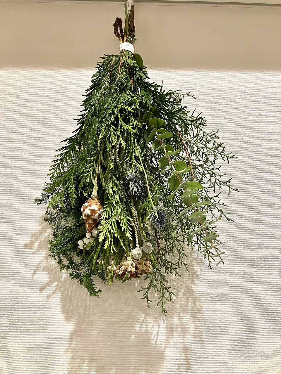 とても良い香りで、癒されました。 家にあったスワッグの材料も加えて、今年もかわいいスワッグができました。