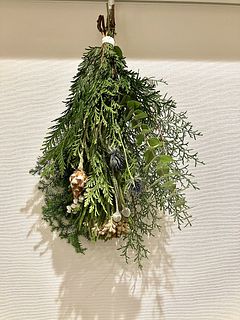 ブルーホワイト系でまとめられていて、とてもいい香りがします。早速スワッグにして香りを楽しんでいます。自分でクリスマス系の飾りを足してもいいですね。