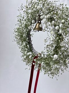 かすみ草がしっかりしていて量もたっぷりでした。リボンは結びたかったのでベルの上に付けました。かすみ草のリースは初めて作ったのですが、茎が柔らかいので、やはり難しいですね。作り方を丁寧に説明する動画があったのも良かったと思います。
