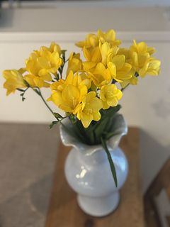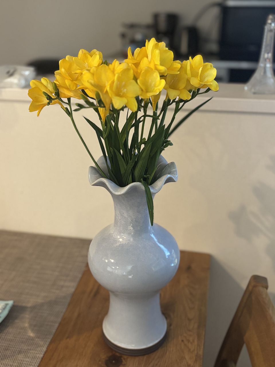 フリージアの香りが大好きで 玄関に飾りました♪ 入って来るとふわっと香り 気分が上がります😊