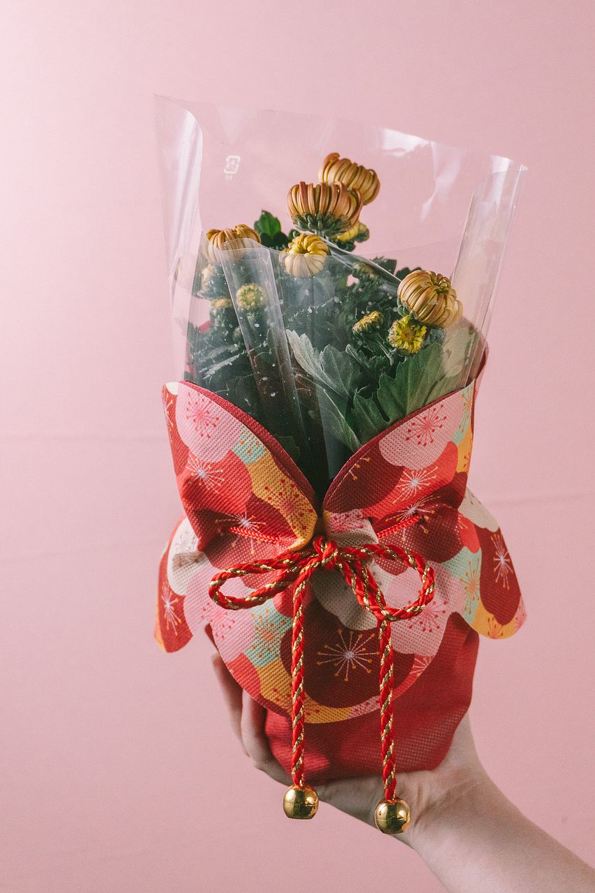 巾着仕立てのマムをそっとお部屋に飾るだけで、空間が一気に華やぎ、季節感あふれる迎春インテリアに🎍