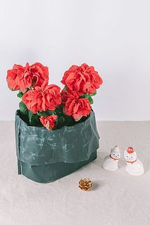 紙でできているので入れる鉢に合わせてかんたんにサイズ調整できるのが魅力。6号用ですが小さめの鉢にも使えます。折り曲げたりくしゃっとさせたり自由にアレンジを楽しんで(写真では端を折り返して使用)。しっかりとマチもついています。