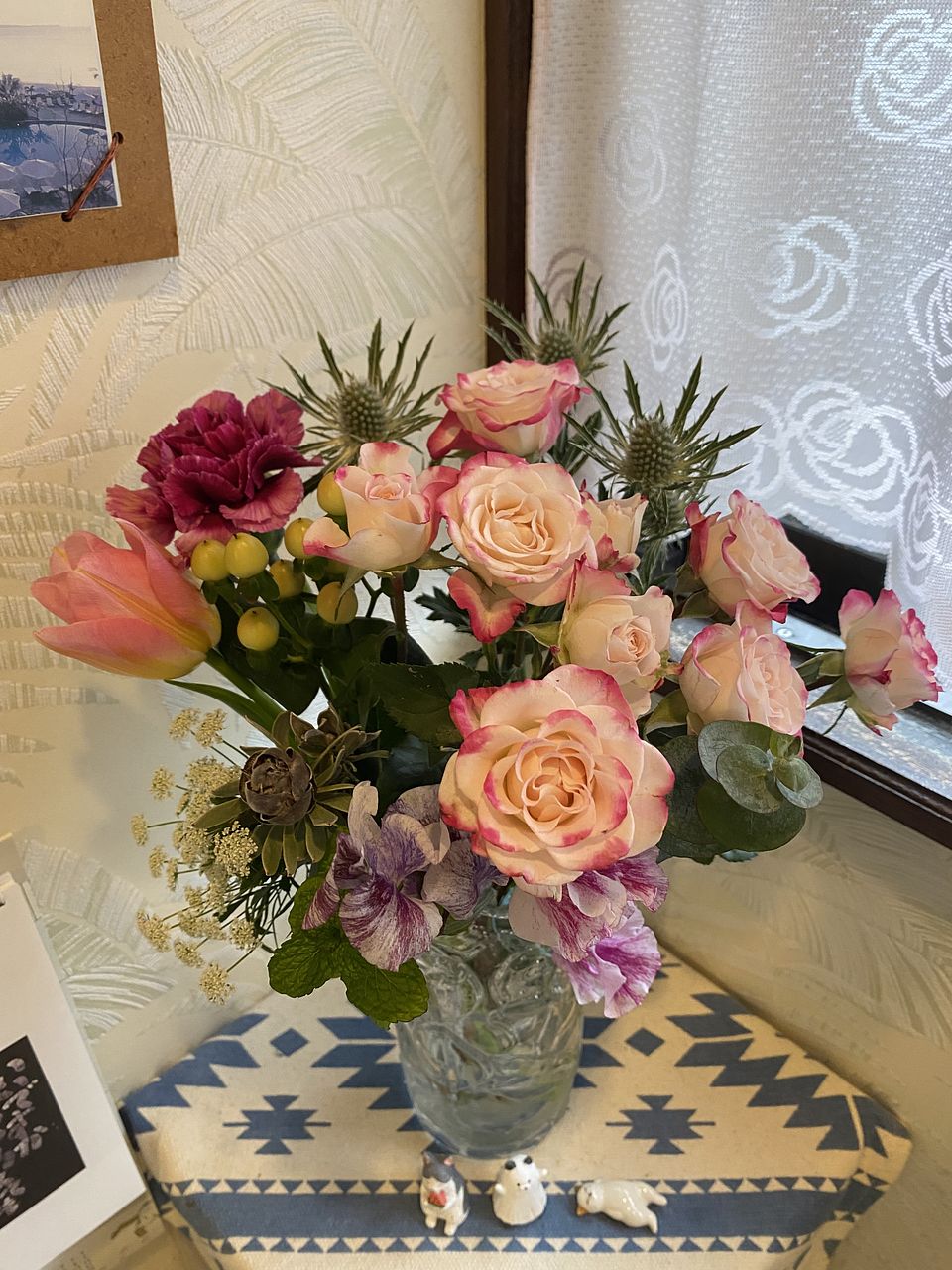 ブーケとあったのでそのまま飾れるのかと思ったのですが、色々なお花が混ざり込んでいたのでいくつかの花瓶に分けて飾ってみました。 お得感満載です🉐
