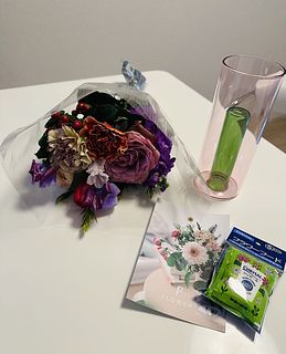 初めて、flowerさんでお花を購入しました! 段ボールを開封する前から良い香りがしており、想像以上に素敵なブーケで、感激しました。お花の栄養剤もあんなにたくさん入れてくれると思っていなかったので嬉しかったです。 大切に水揚げし、飾ったので、毎日楽しみたいと思います。